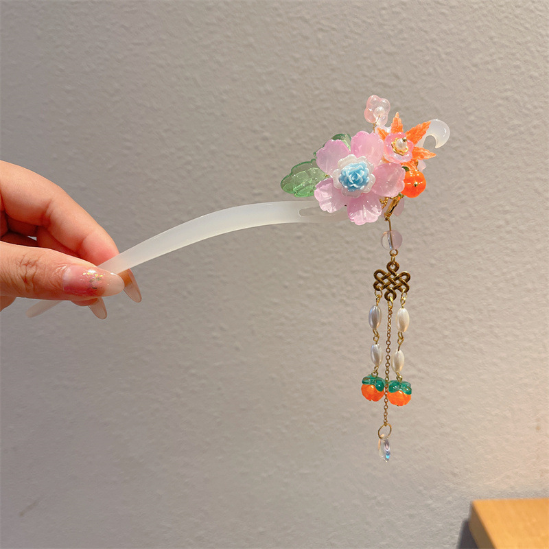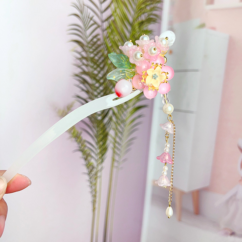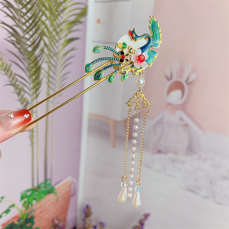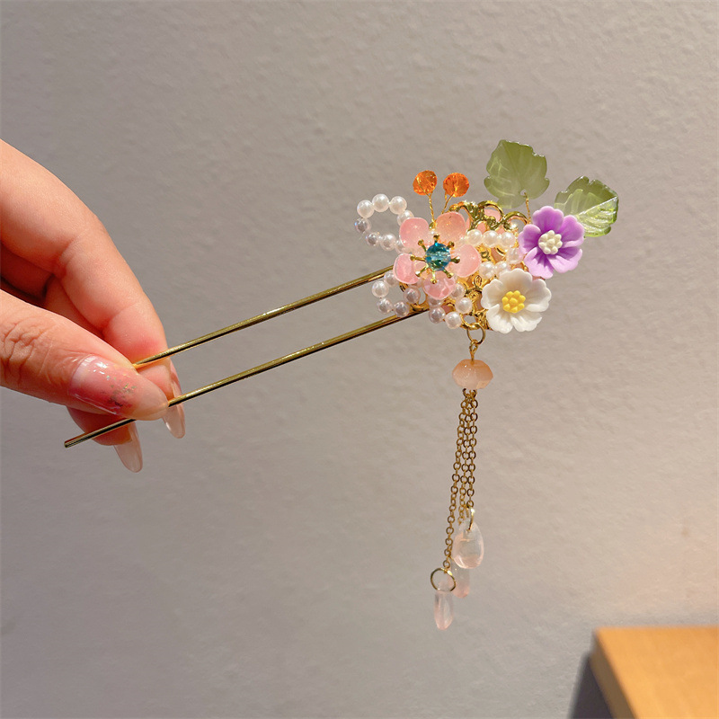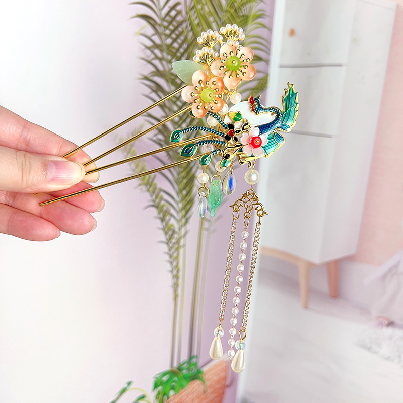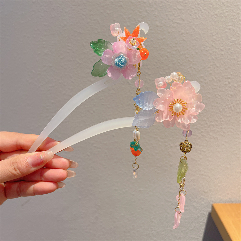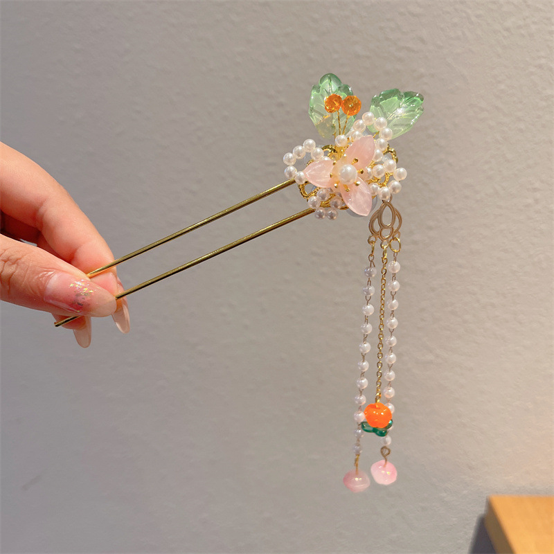 Hanfu jepit rambut model kuno anak perempuan, jepit rambut rakun, kostum kuno, aksesori rambut, rumbai langkah, kepala jepit rambut