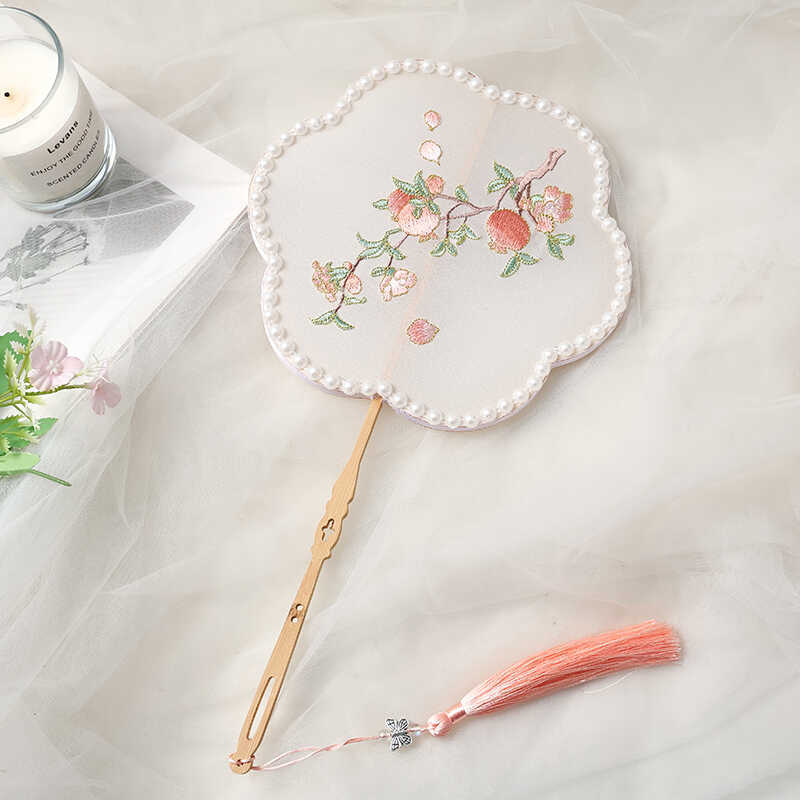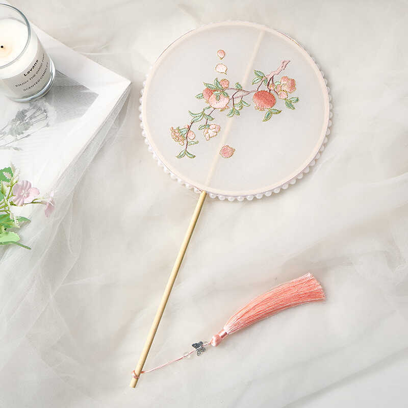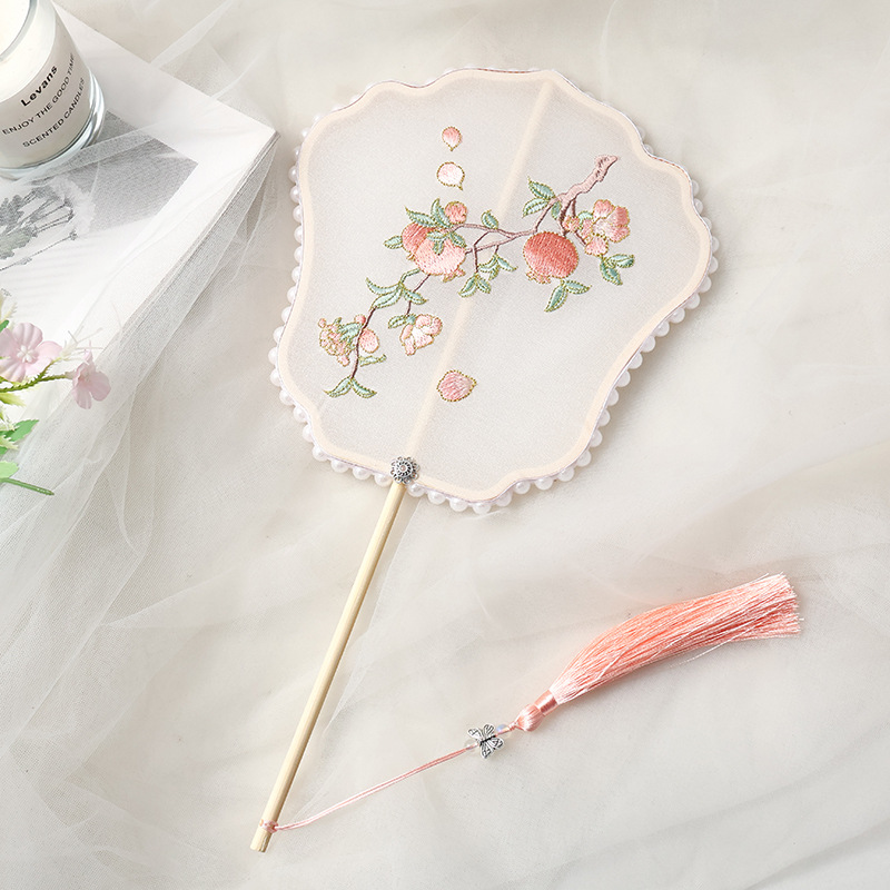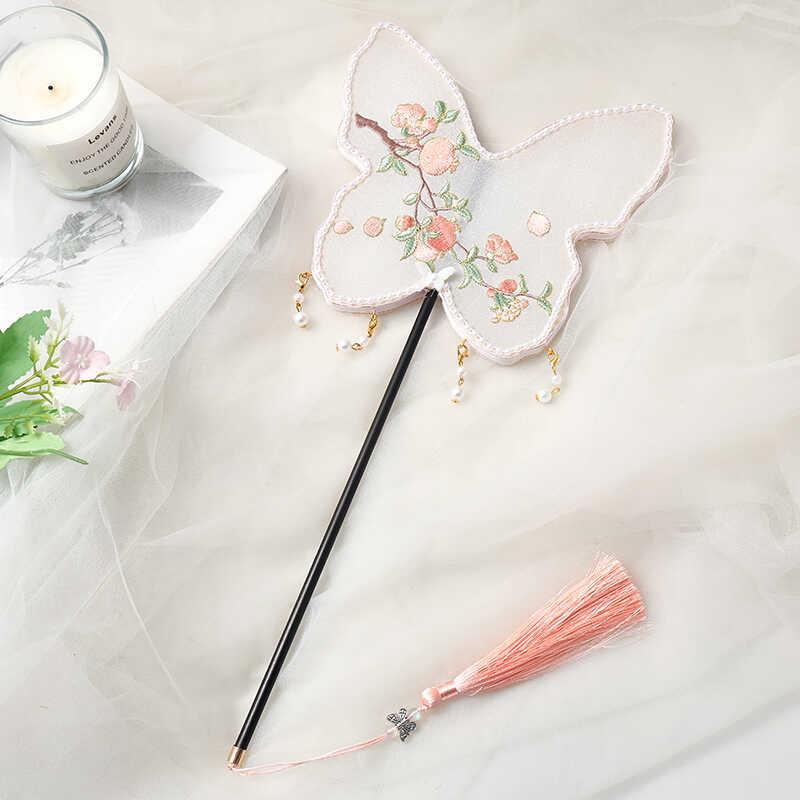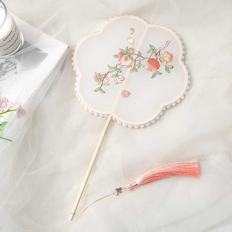 Kipas Rumbai Gaya Kuno Cina Bordir Hanfu Klasik Kipas Kupu-kupu Buatan Tangan Kipas Angin Bulat Anak-Anak Kipas Tari Delima