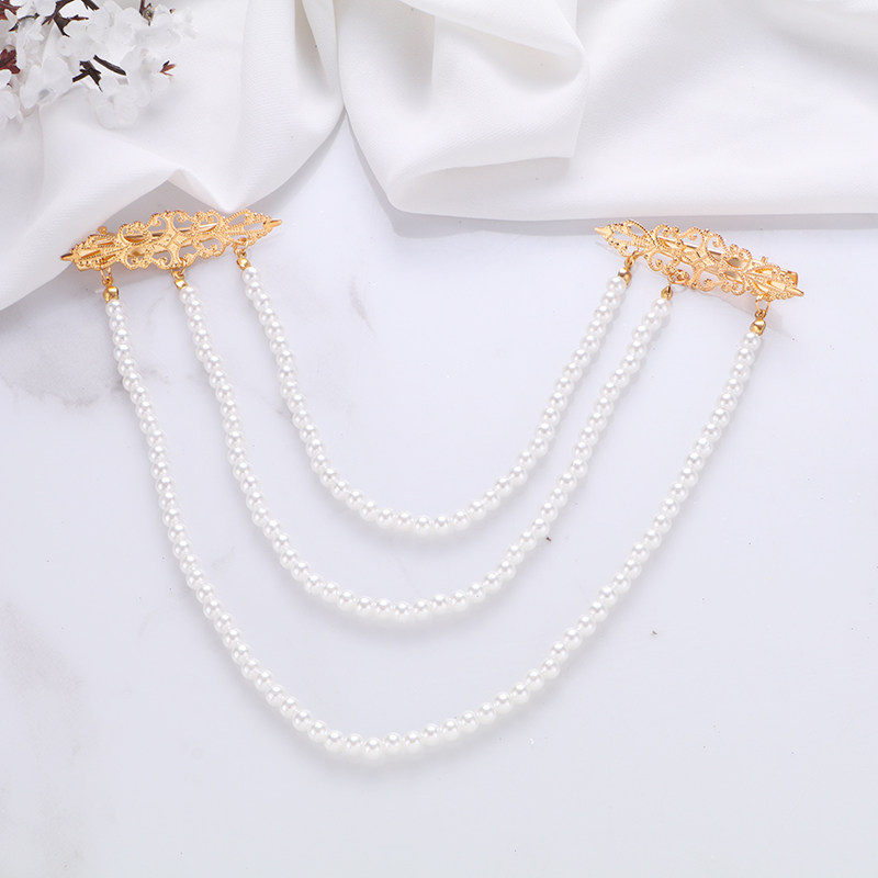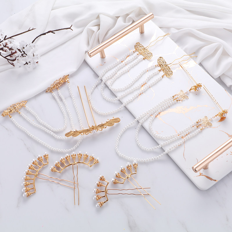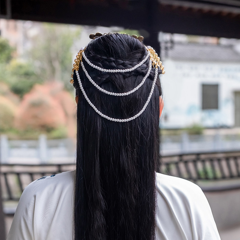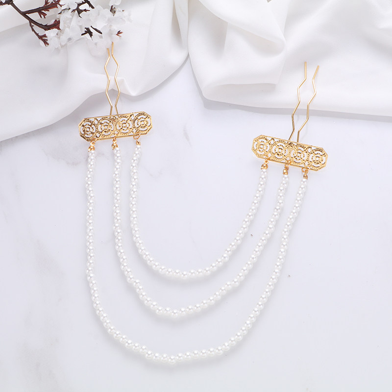 Song Fengming jepit rambut mutiara, aksesori kepala baris jepit rambut Han gaya kuno hiasan dahi