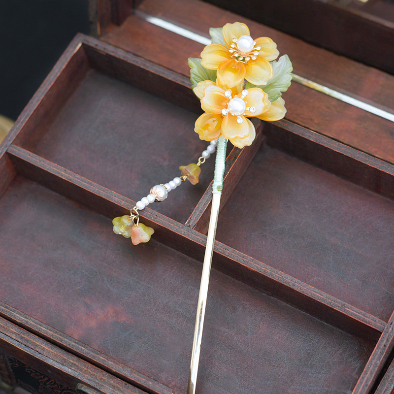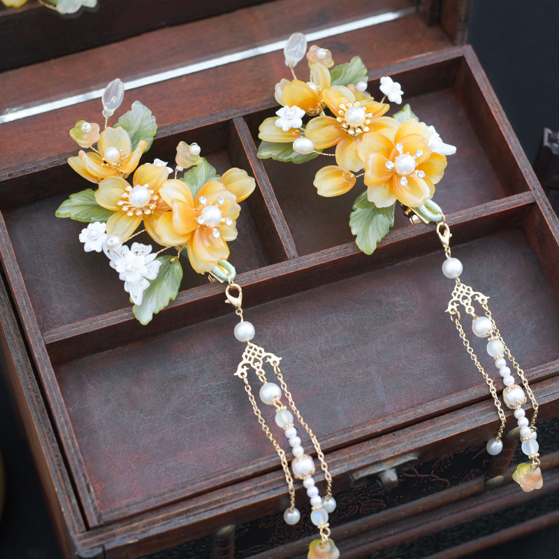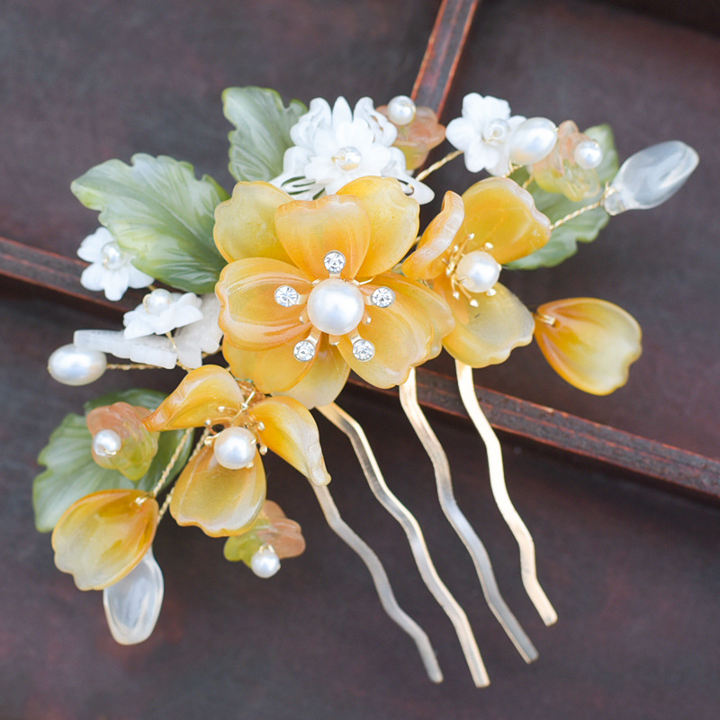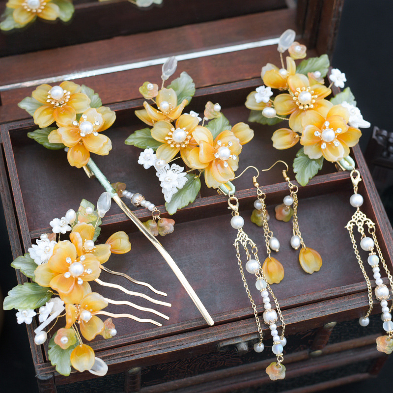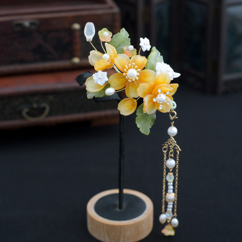 Hanfu hiasan kepala wanita, jepit rambut kaca super peri set lengkap sisir rambut gaya kuno kostum kuno rumbai langkah goyang aksesoris sisir sisipan