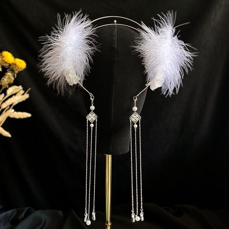 Ikat kepala bulu model kuno, ikat kepala eksotis, hiasan kepala langsung alat peraga foto, aksesori rambut rumbai peri