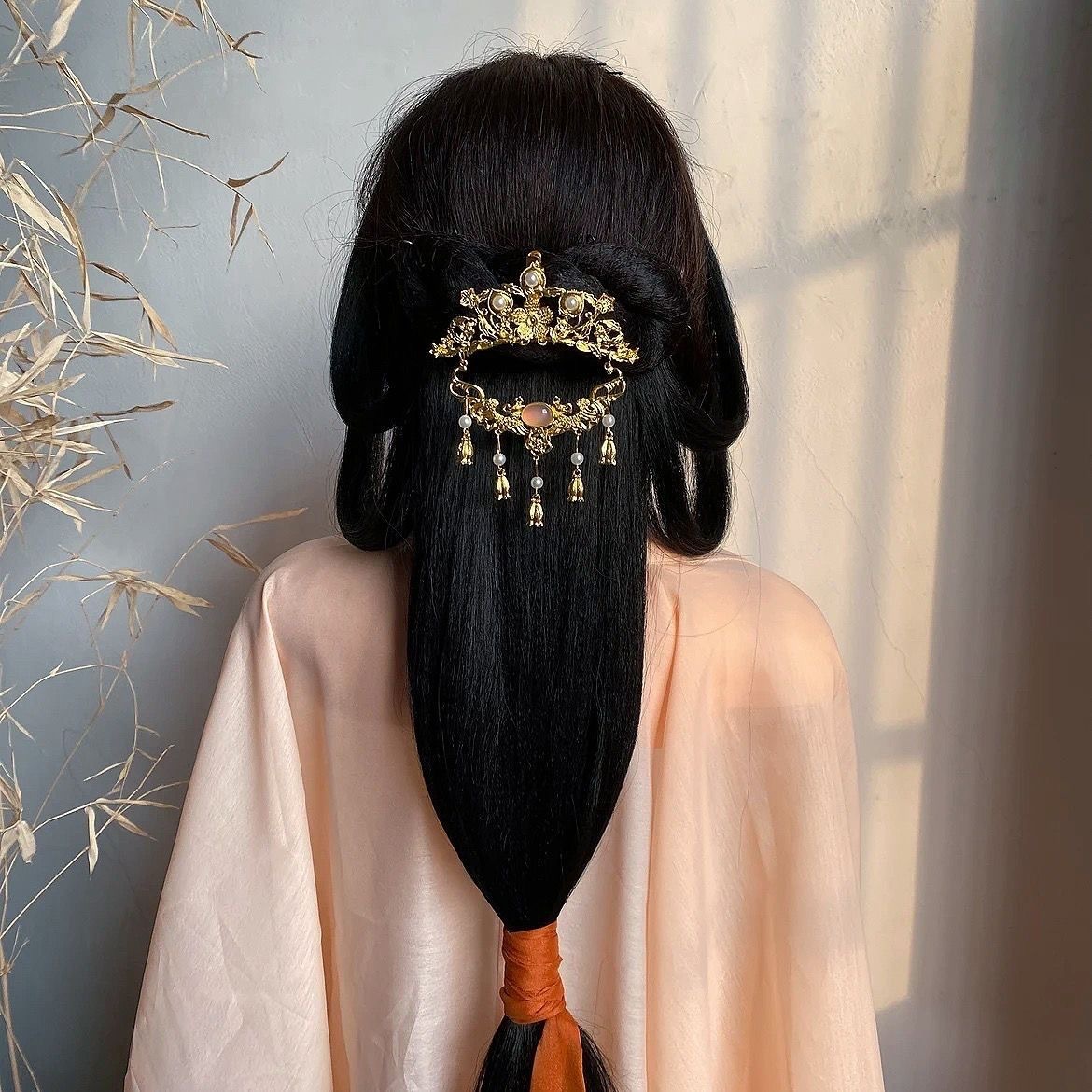 Cold Warring State robe tekanan belakang indah musim gugur rumbai jepit rambut mutiara jepit rambut gaya kuno emas gaya kuno aksesoris rambut klasik
