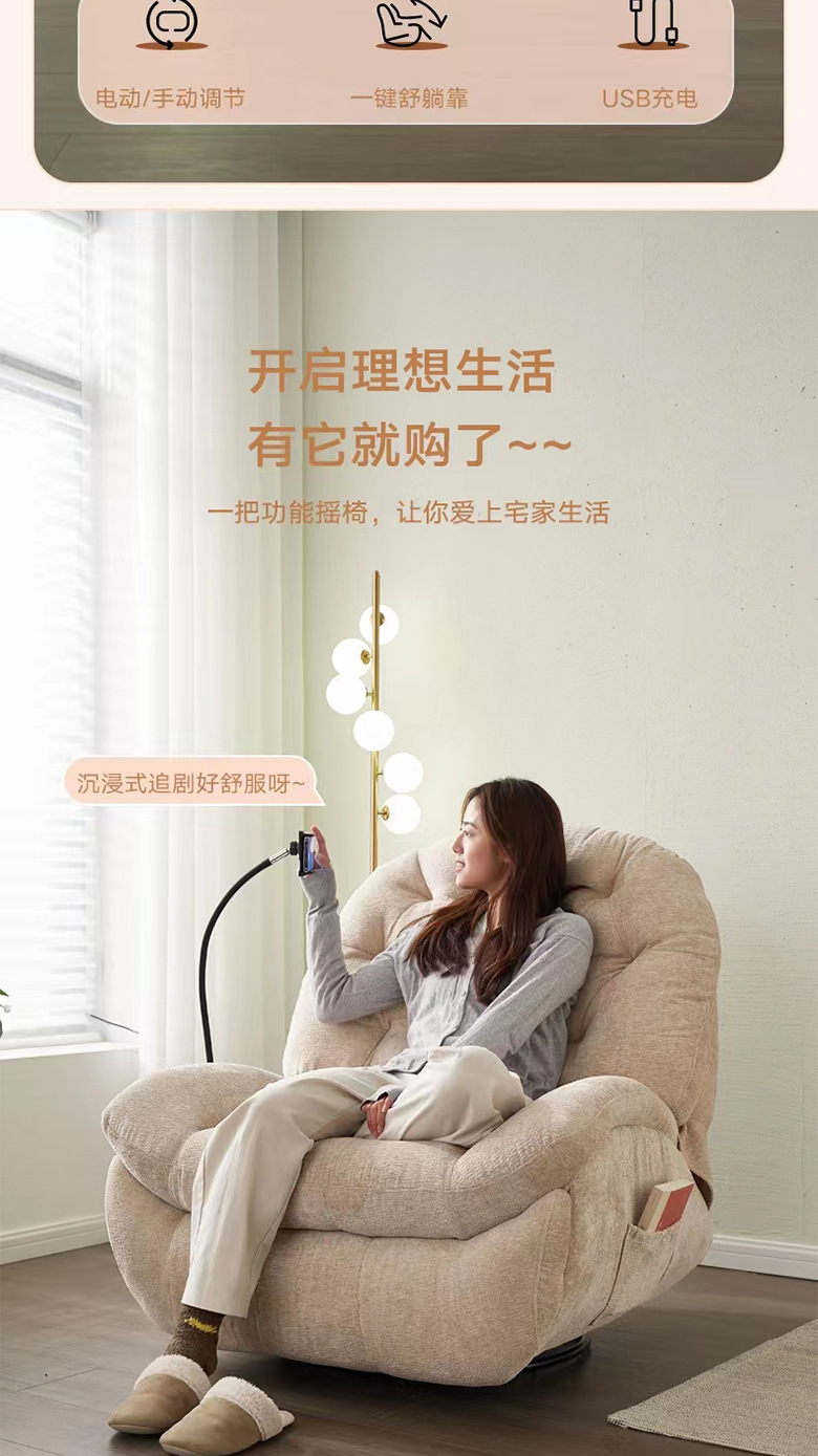 Sofa listrik multifungsi, tunggal, rumah, ruang tamu, berbaring, cahaya apartemen kecil, gaya ins, kursi malas kelas satu