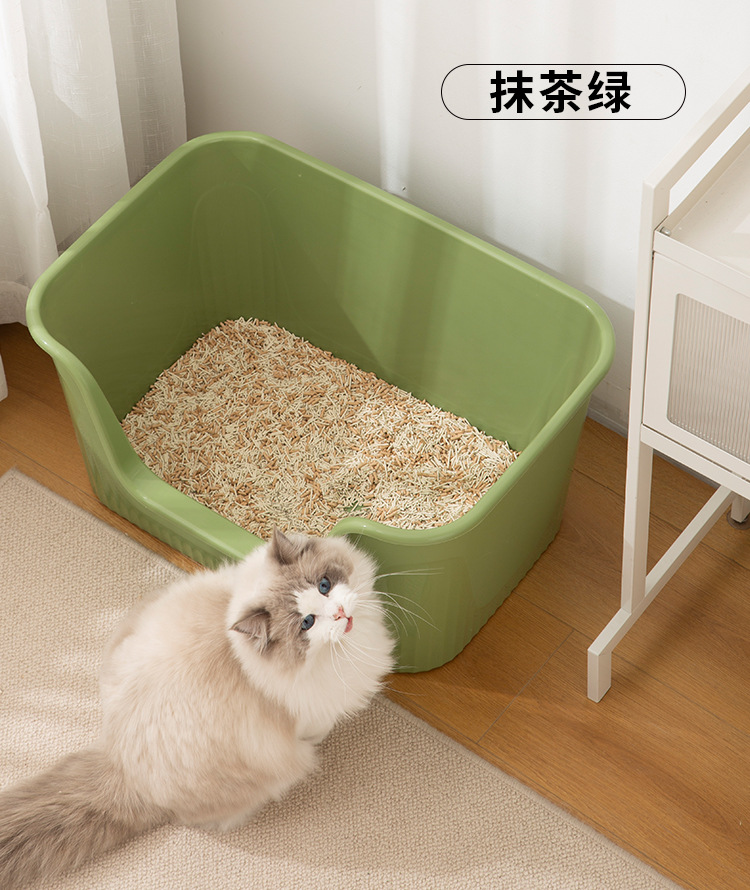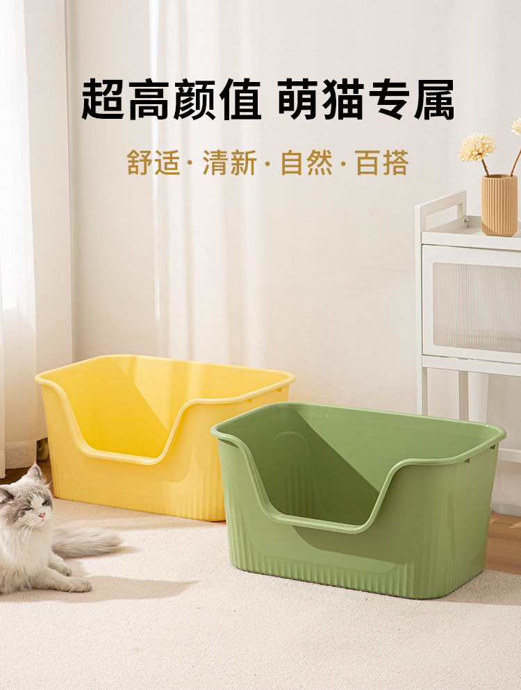 Kotak Kotoran Kucing Sedang Semi Tertutup Toilet Kucing Terbuka Antipercikan Kotak Kotoran Kucing Tinggi Perlengkapan Kotak Kotoran Anak Kucing 45
