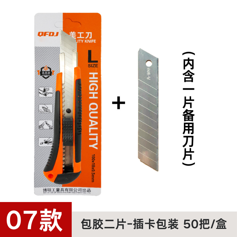 本链接美工刀图片为实拍图,纸卡包装内容为样品图,包装图案文字和美工刀颜色随机发货。