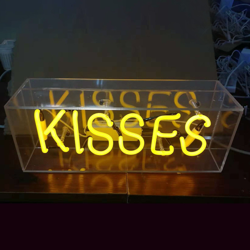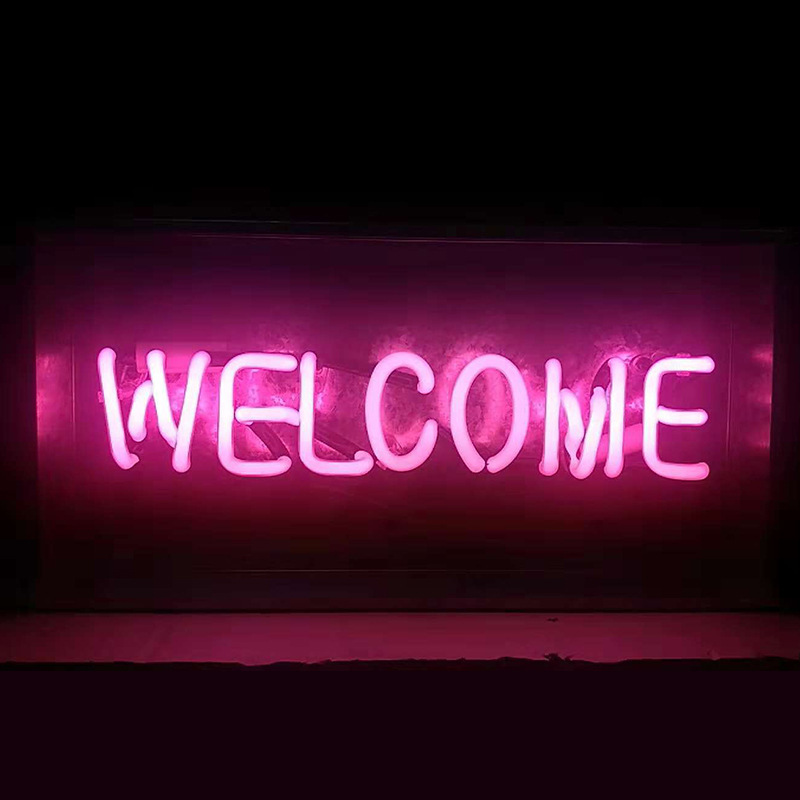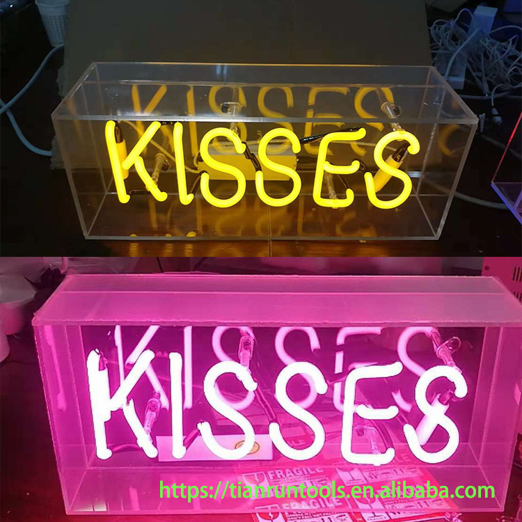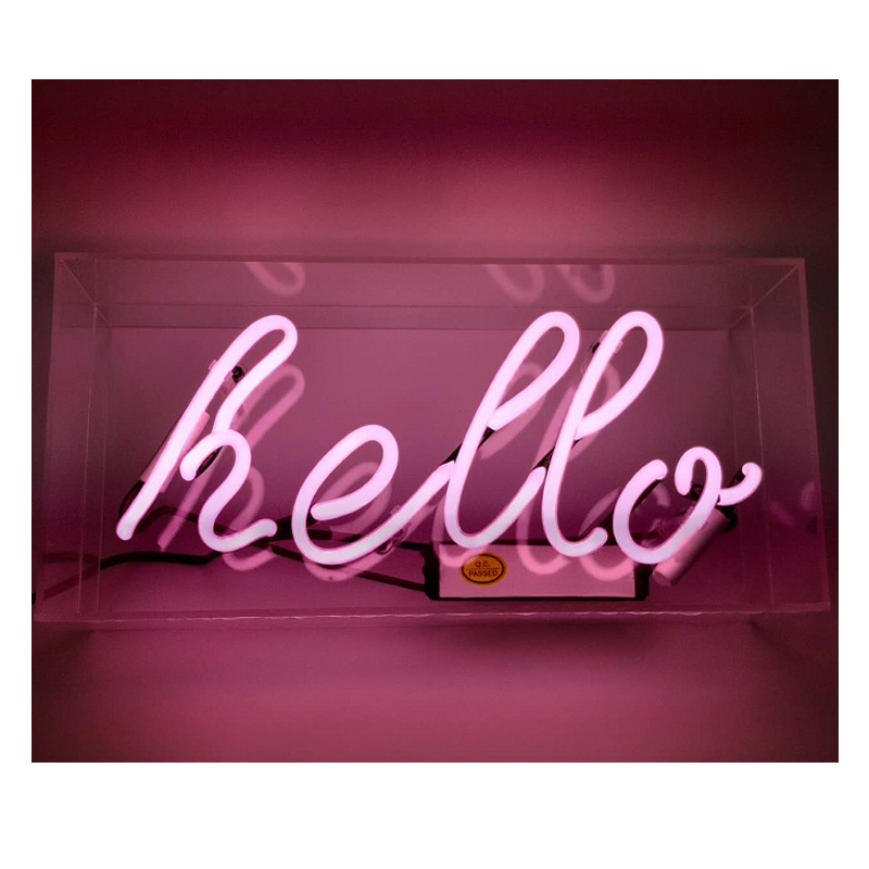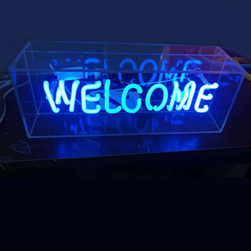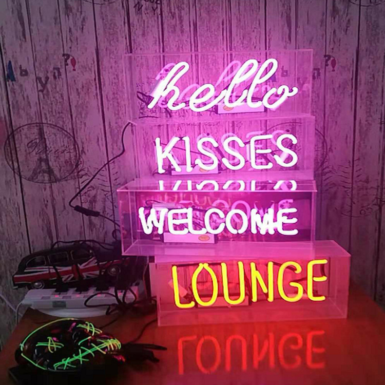 Lampu neon kotak kaca akrilik transparan, lampu kotak huruf, lampu dinding gantung untuk rumah/bar, lampu malam LED, lampu neon LED