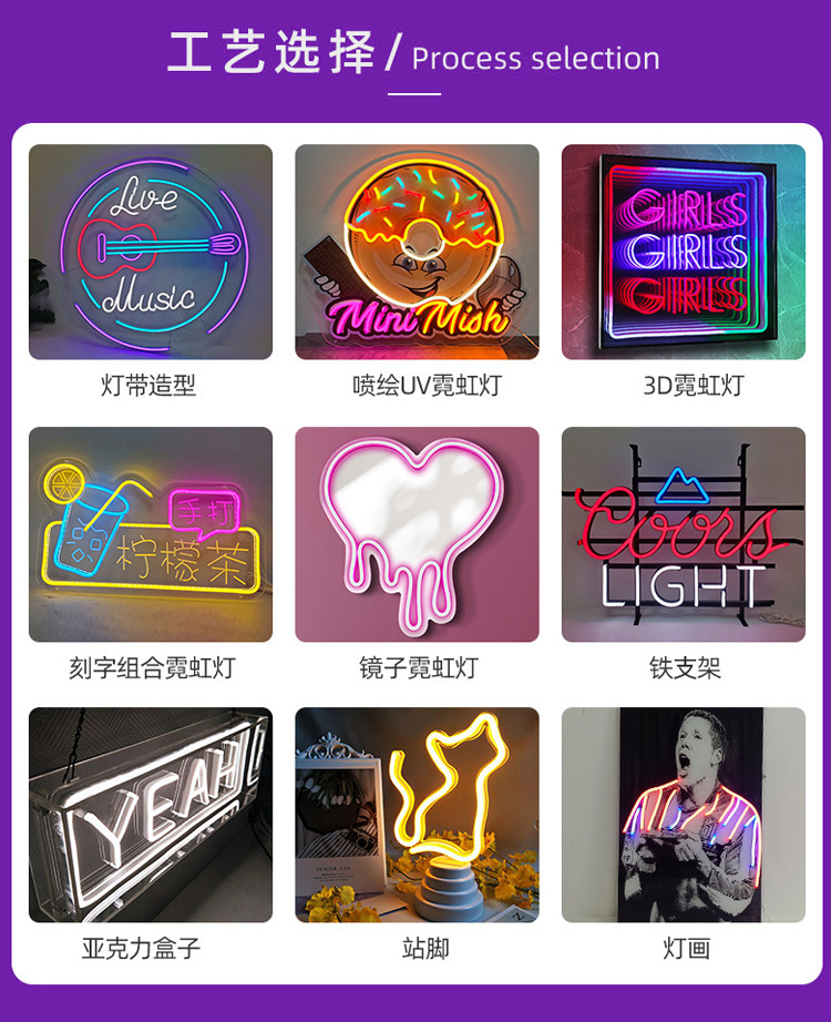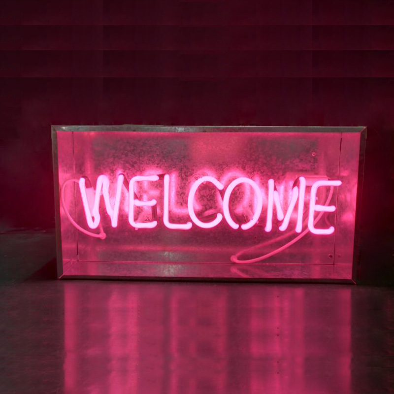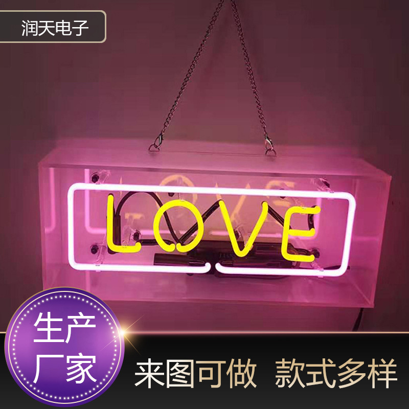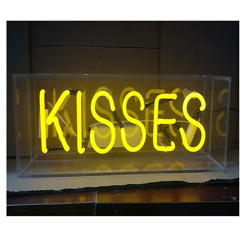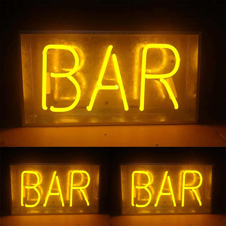 Lampu neon kotak kaca akrilik transparan, lampu kotak huruf, lampu dinding gantung untuk rumah/bar, lampu malam LED, lampu neon LED