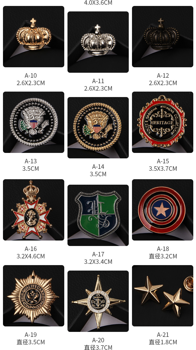 Bros Jepang Mode Pria baroque retro jk lencana kecil setelan medali logam jaket mahkota pin gesper mode