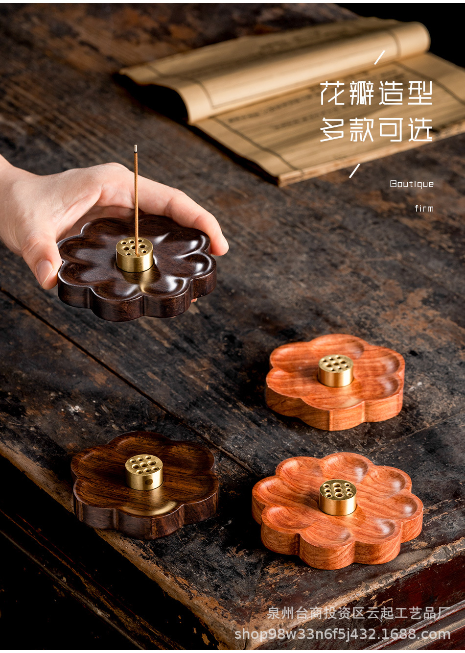 Tempat dupa kayu padat bunga sakura tempat dupa dalam ruangan pembakar dupa kayu cendana tempat dupa alas baki kuningan kawat dupa pemegang kreatif