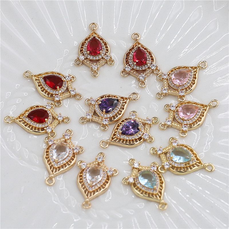 Aksesoris perhiasan DIY, liontin rumbai tembaga multi-lubang, liontin zirkon, gaya kuno, hiasan kepala Hanfu, bahan pakaian etnik