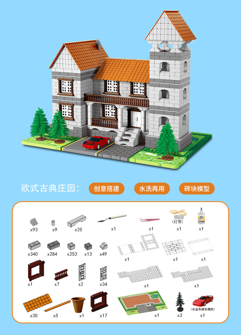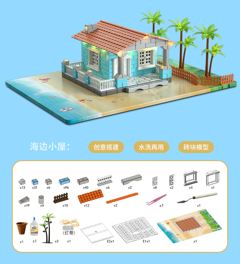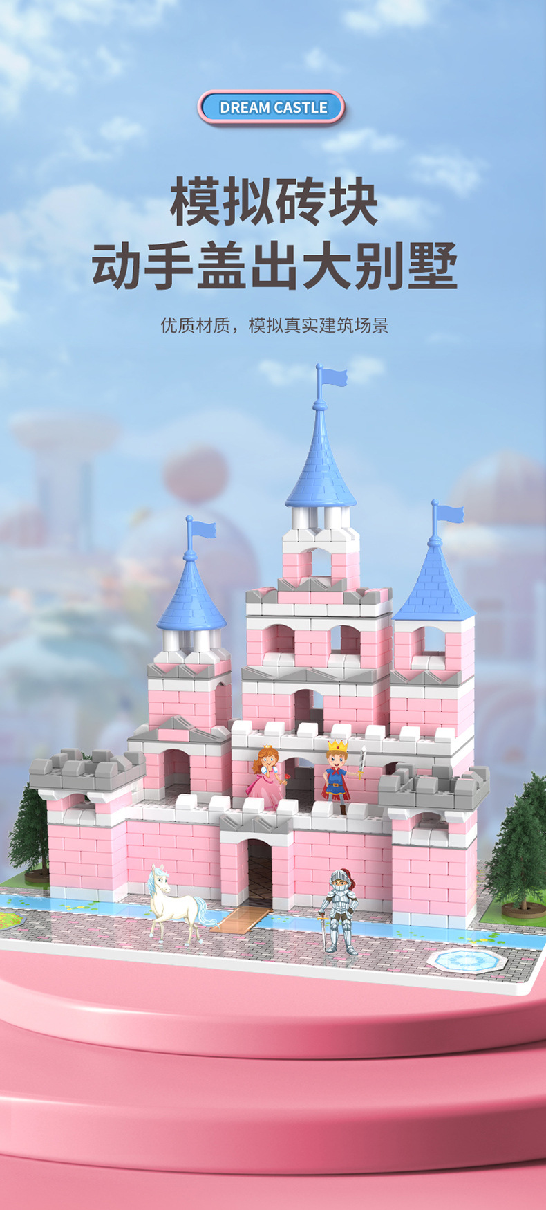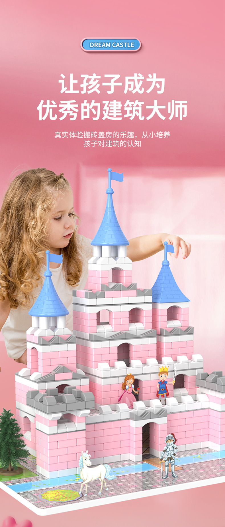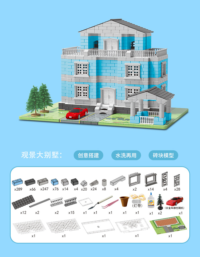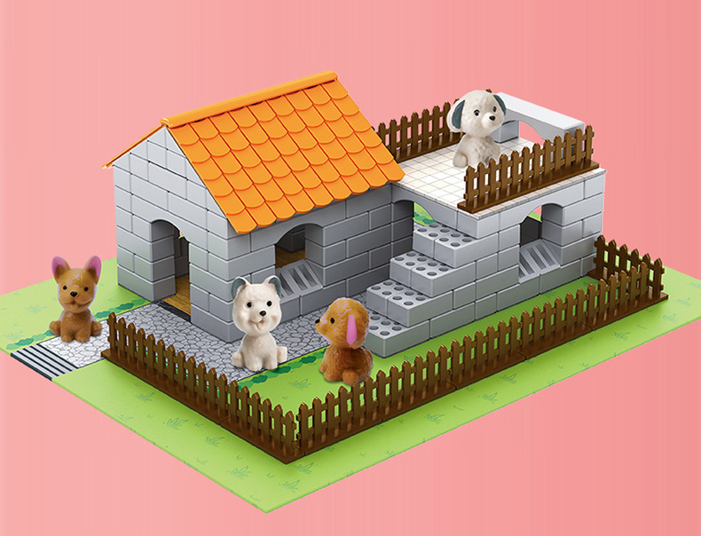 Rumah mainan bata-bata simulasi untuk anak-anak, mainan rumah kecil DIY, perakitan istana arsitek kecil