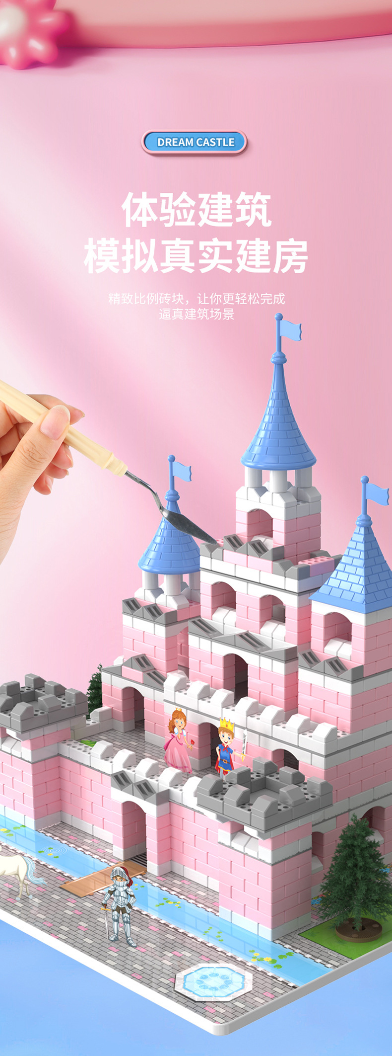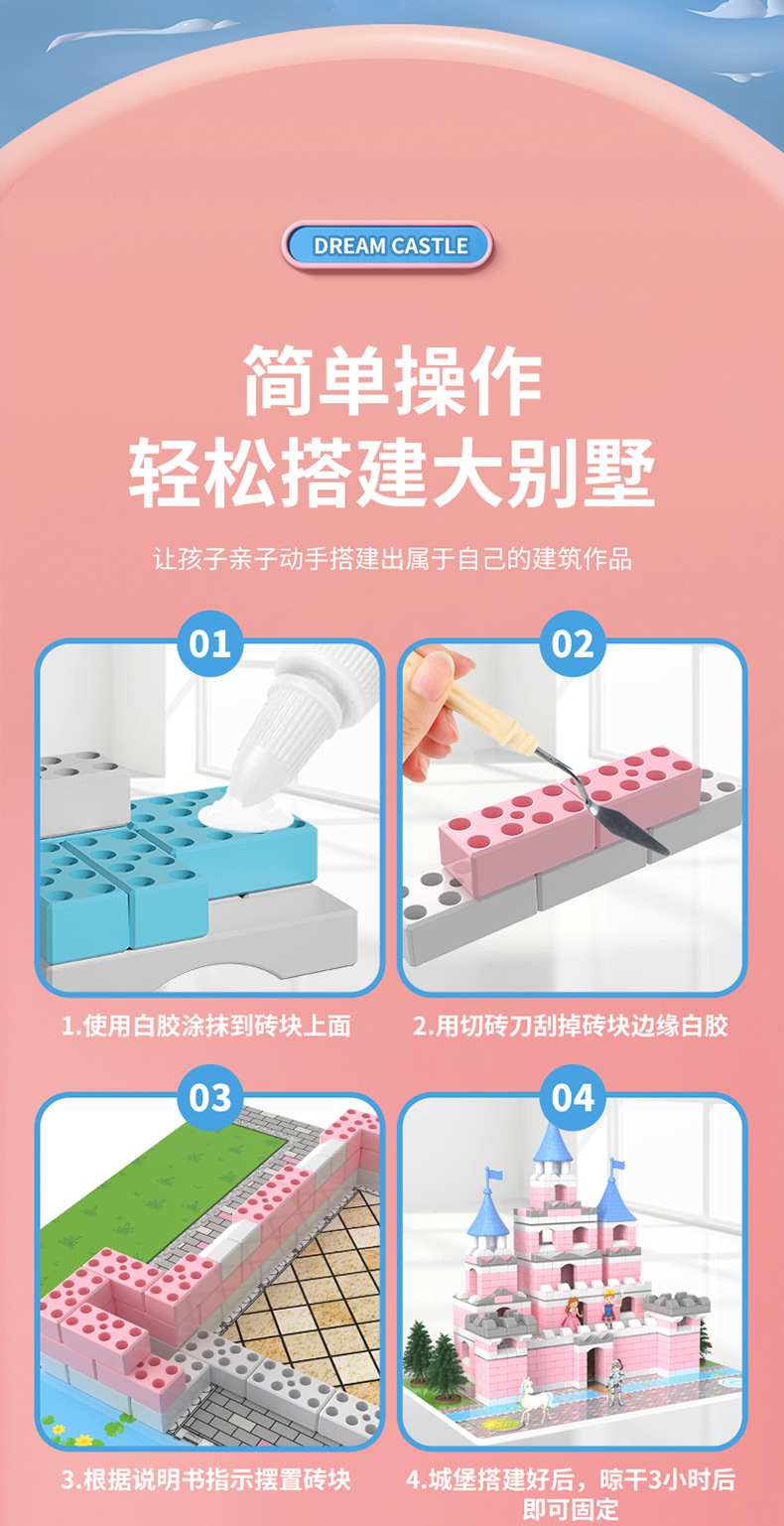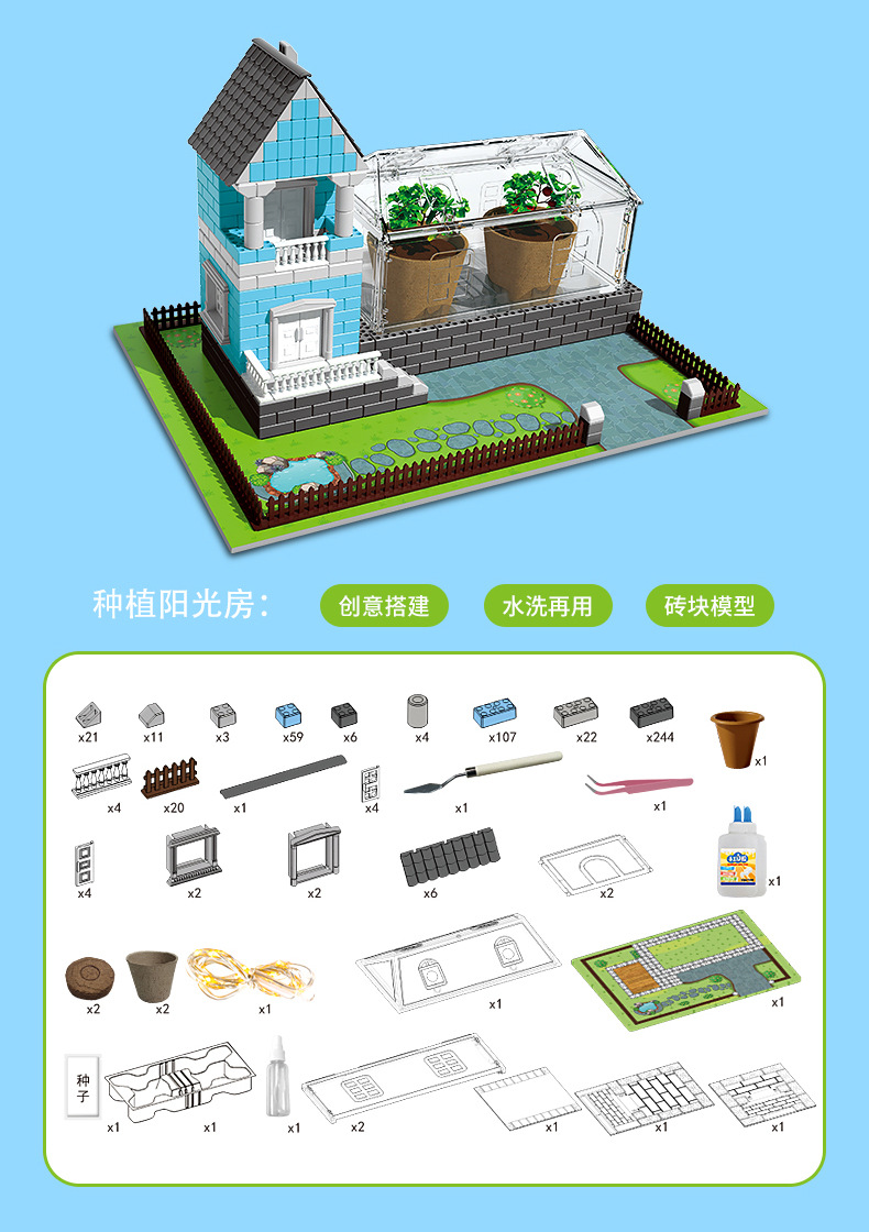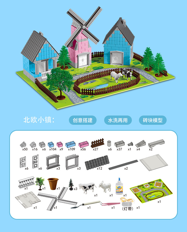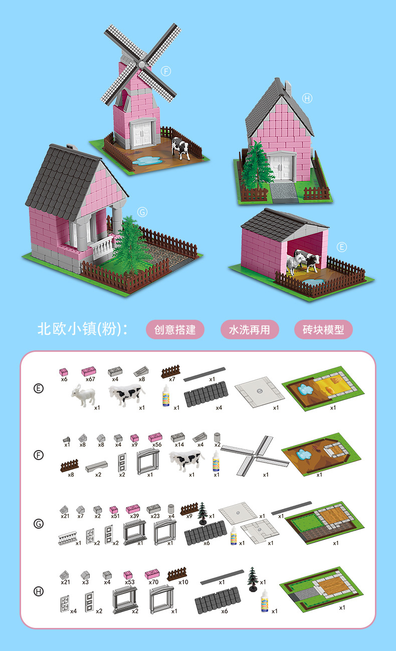 Rumah mainan bata-bata simulasi untuk anak-anak, mainan rumah kecil DIY, perakitan istana arsitek kecil