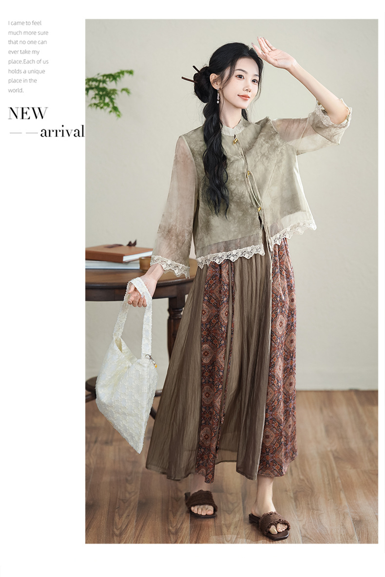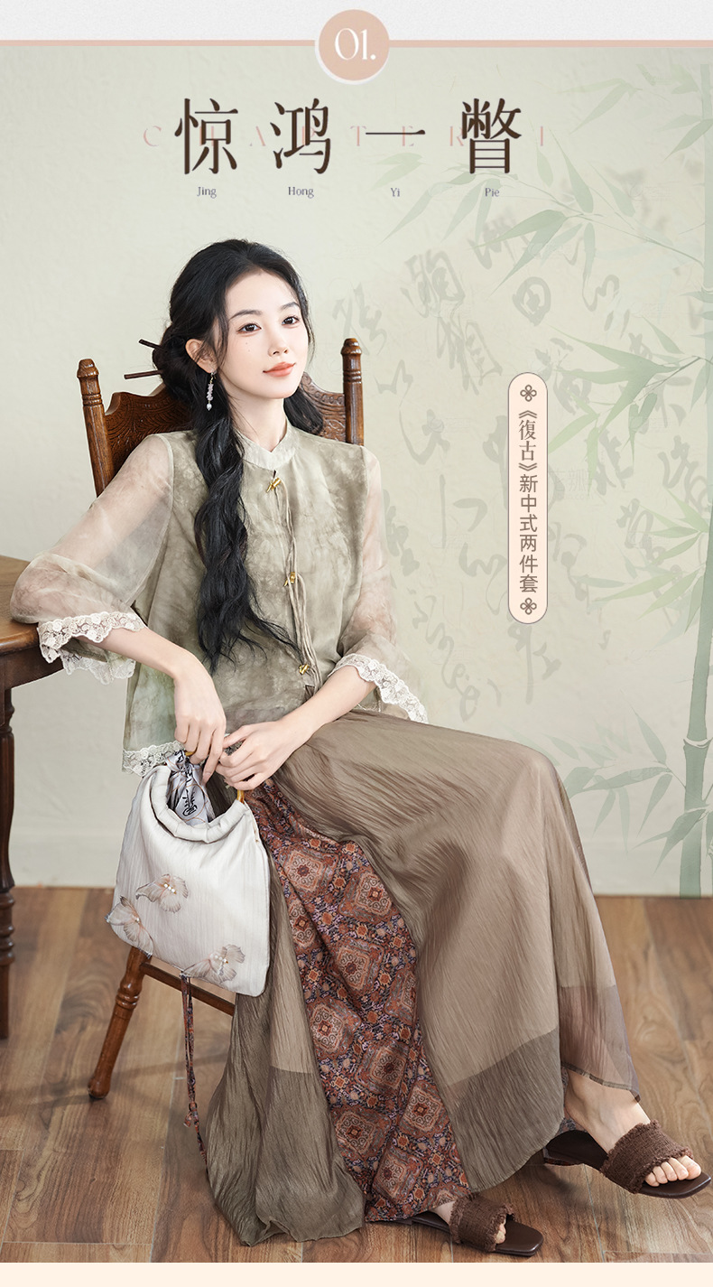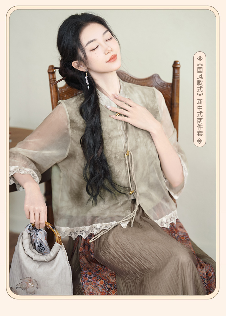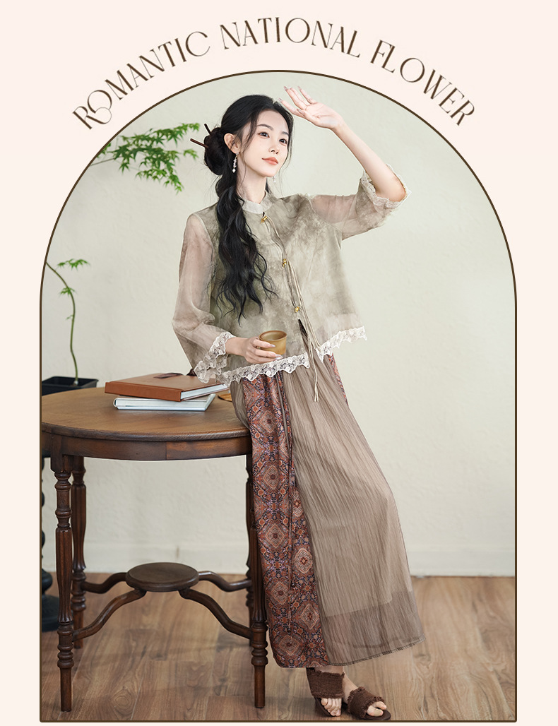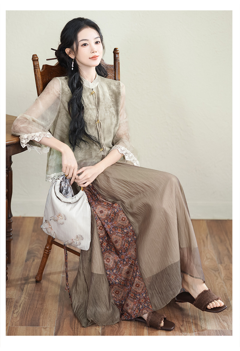 Real shot setelan Wanita Lengan renda, setelan wanita, atasan lengan renda, gesper Hanfu, retro, gaya Cina, baru