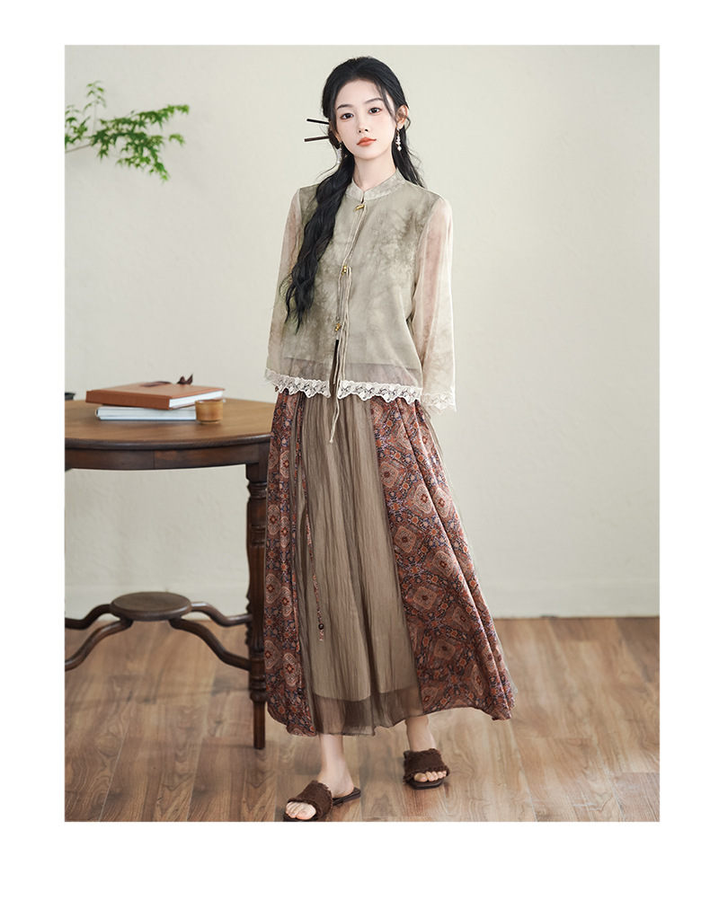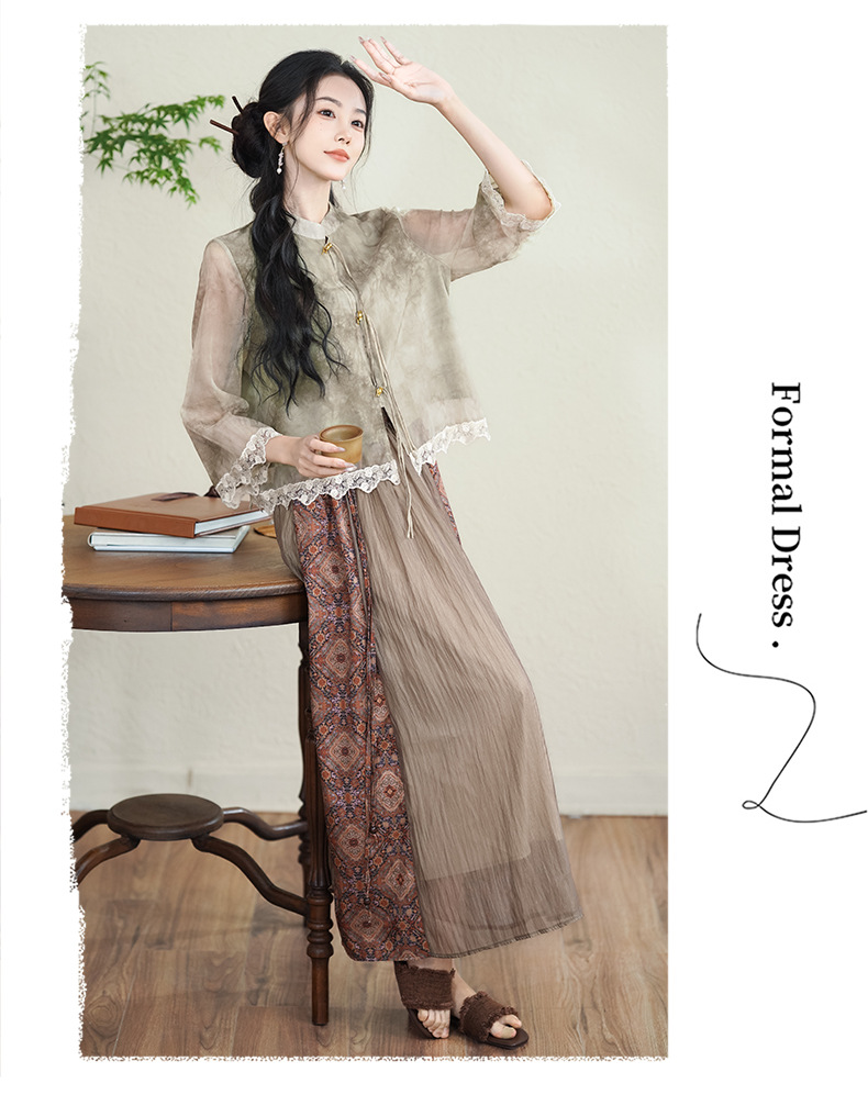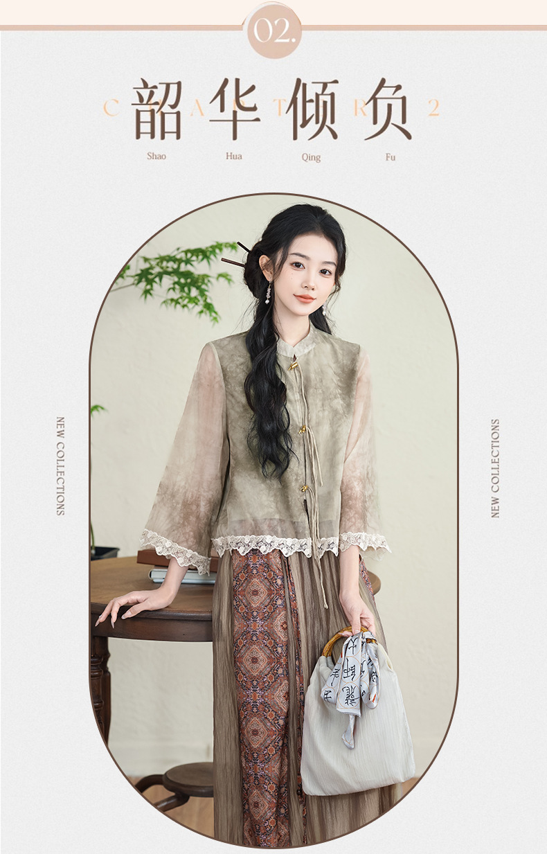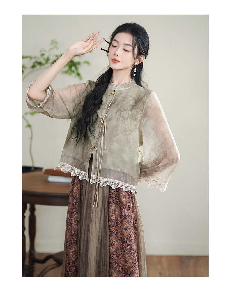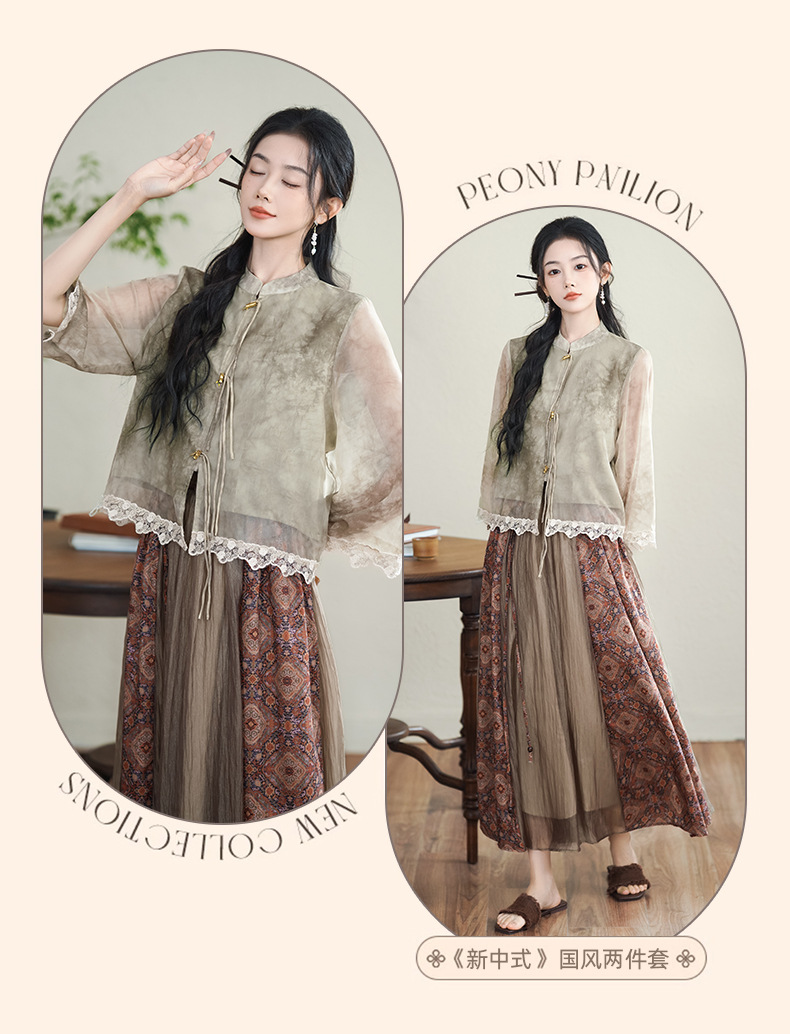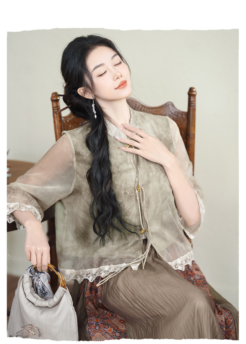 Real shot setelan Wanita Lengan renda, setelan wanita, atasan lengan renda, gesper Hanfu, retro, gaya Cina, baru