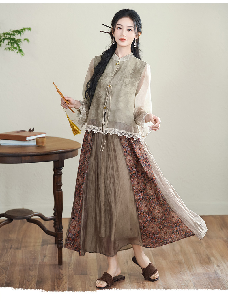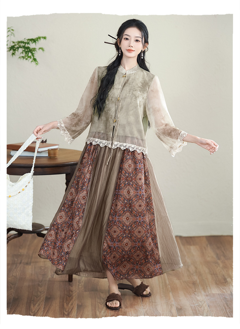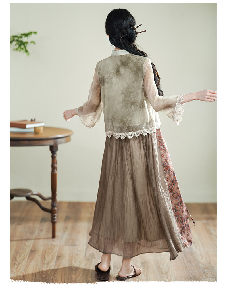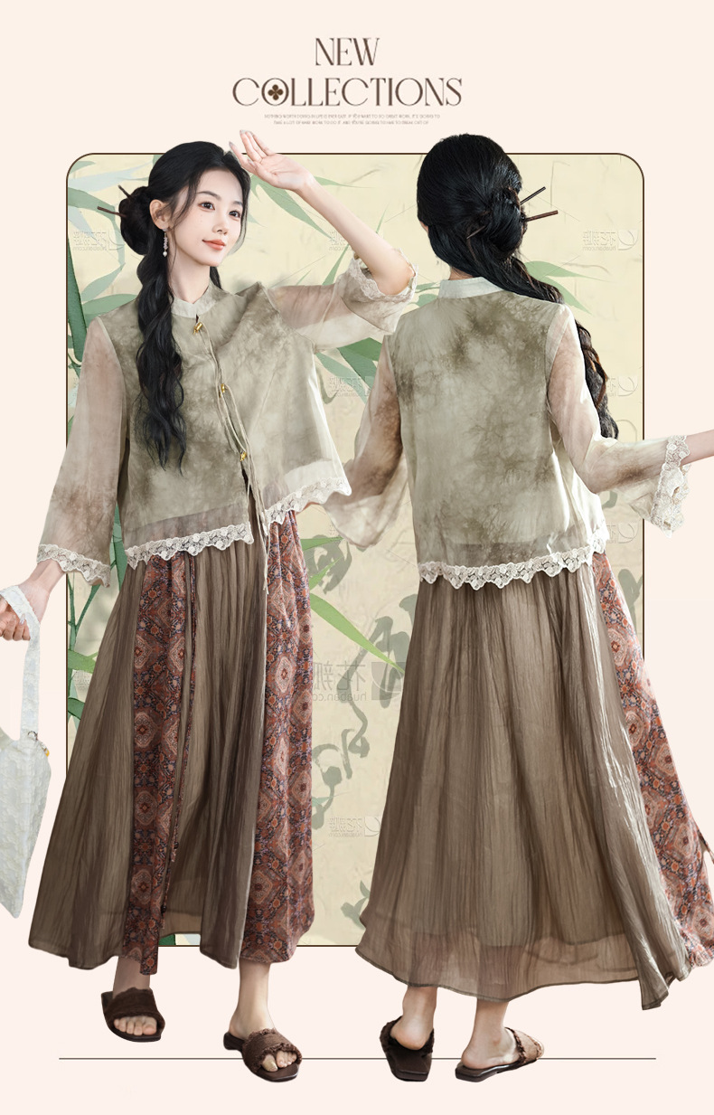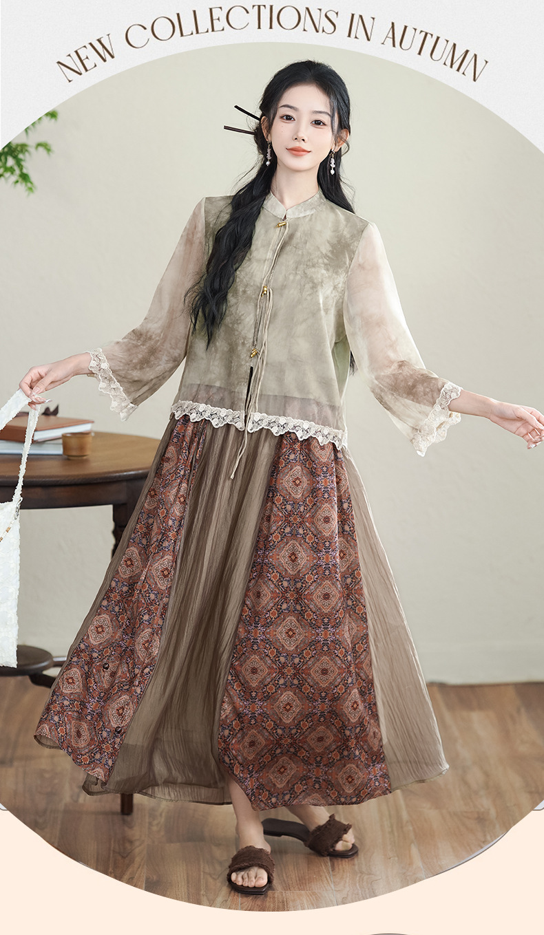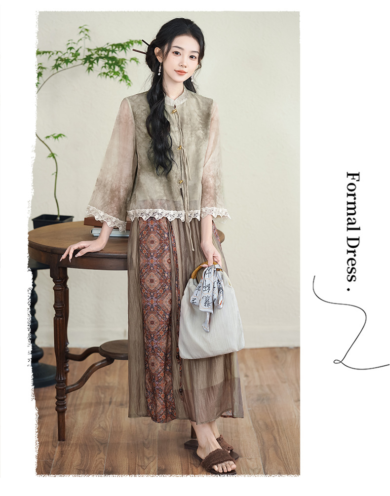 Real shot setelan Wanita Lengan renda, setelan wanita, atasan lengan renda, gesper Hanfu, retro, gaya Cina, baru