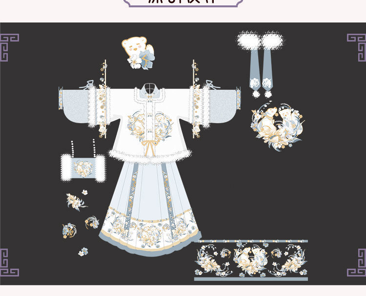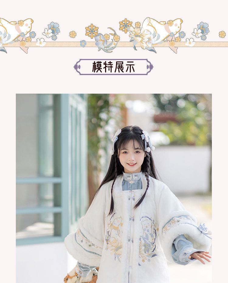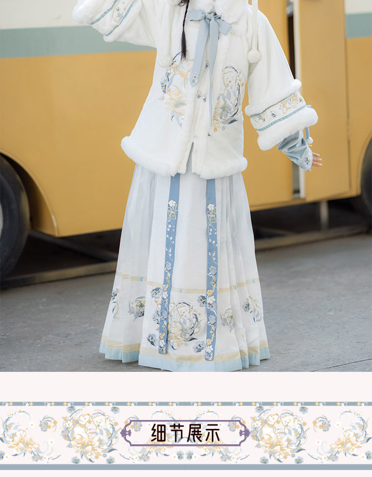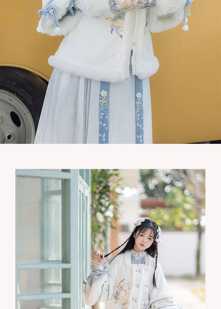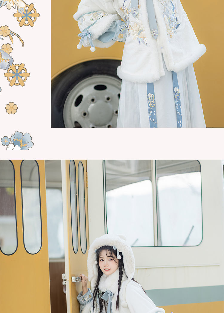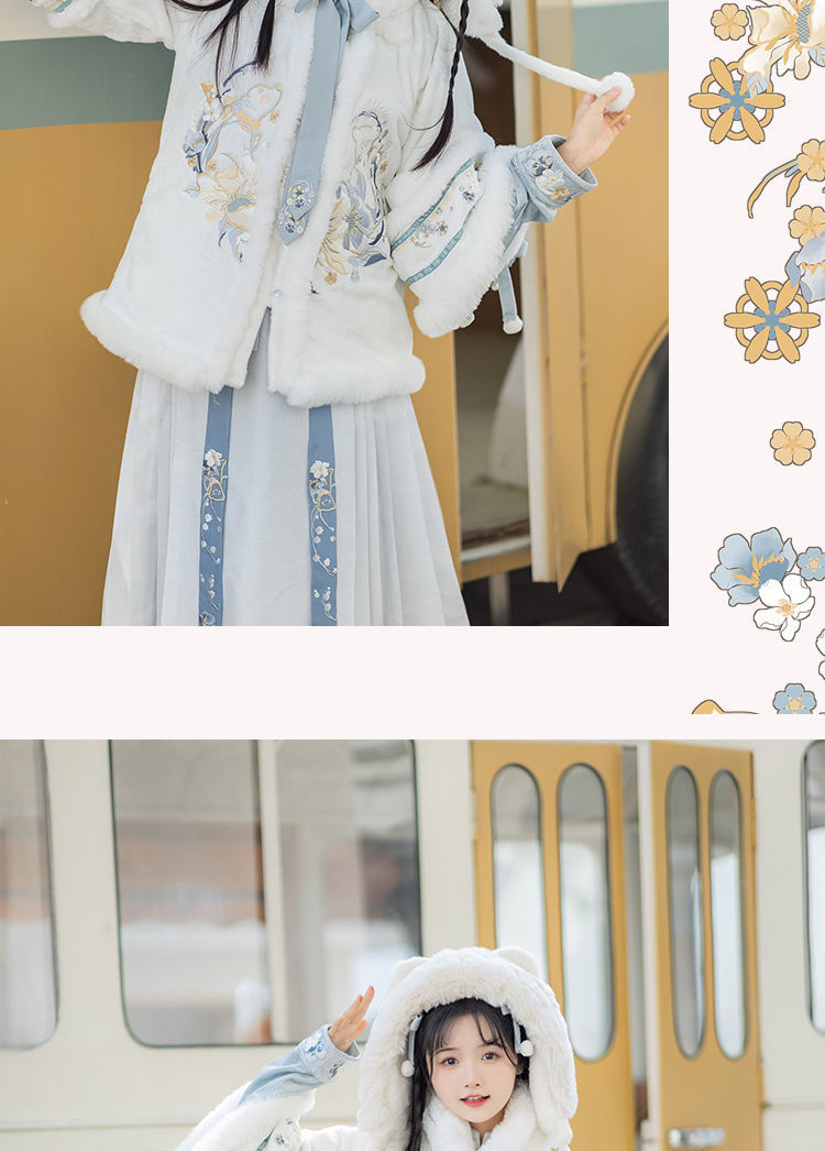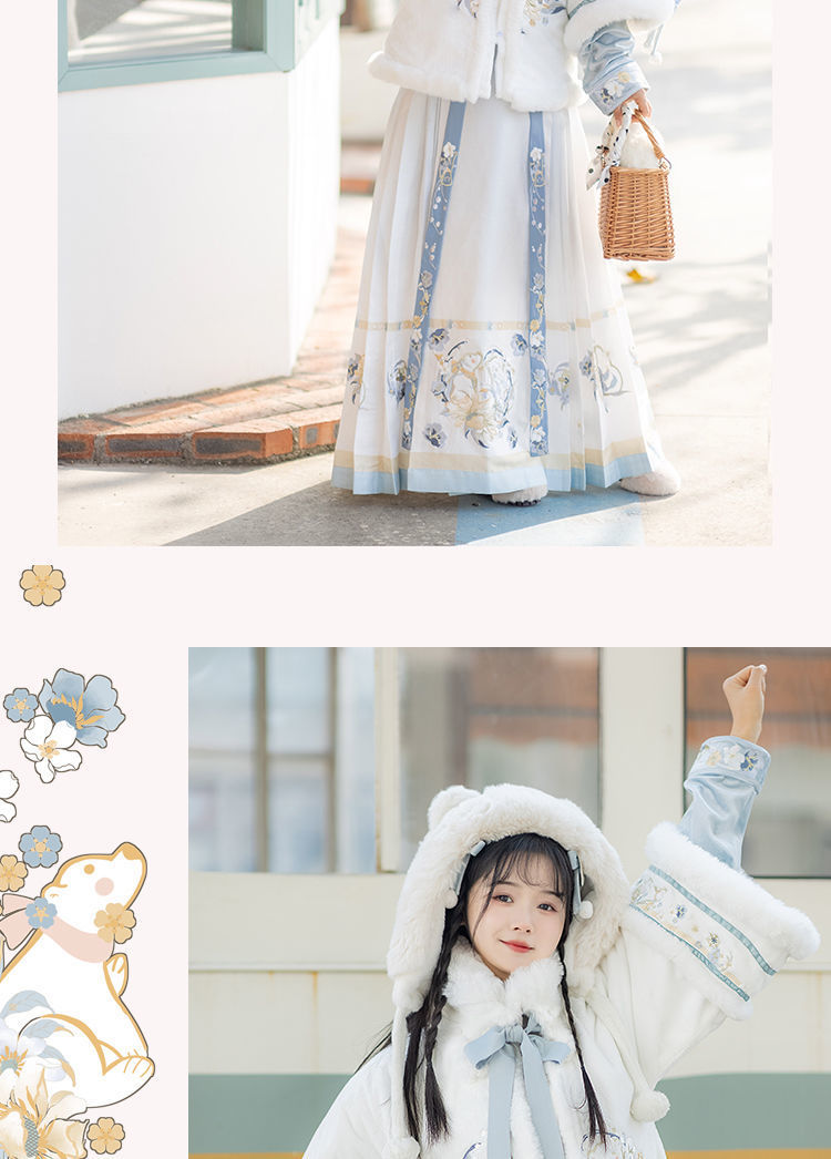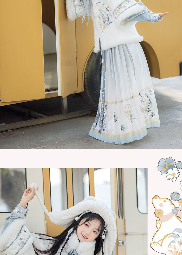 Pakaian wanita, musim dingin lucu beludru putih beruang Han set lengkap Ming bordir batch jaket rompi rok peri Han elemen setelan