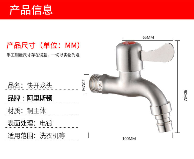 Keran stainless steel multi-fungsi untuk mesin cuci, keran anti-beku, keran cepat buka, keran stainless steel.