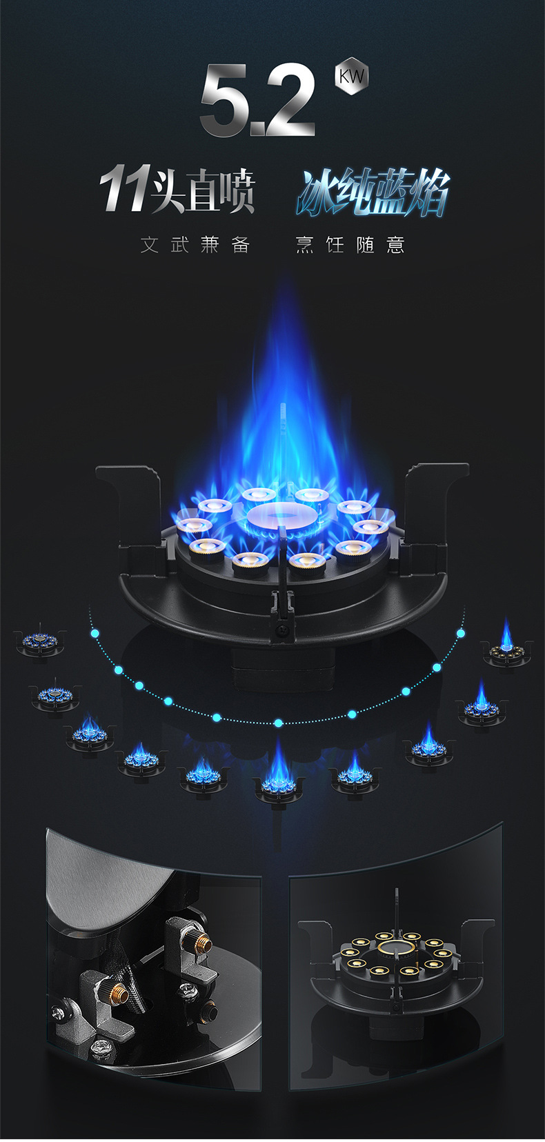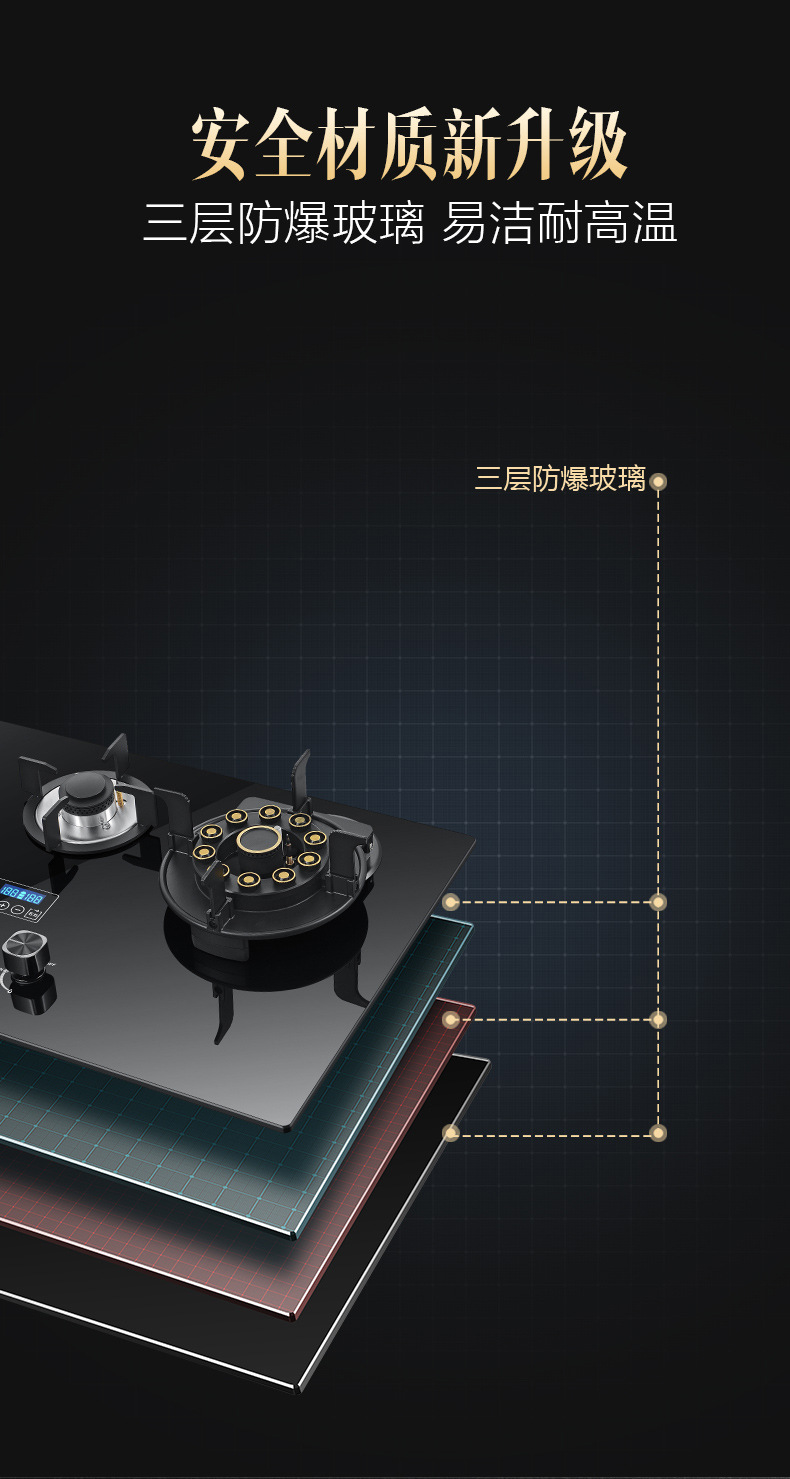 Kompor Gas Tiga Tungku Magic Disc, Kompor Gas Dua Tungku untuk Rumah Tangga, Kompor Gas Terintegrasi untuk Gas Alam dan Gas Cair dengan Api yang Kuat.