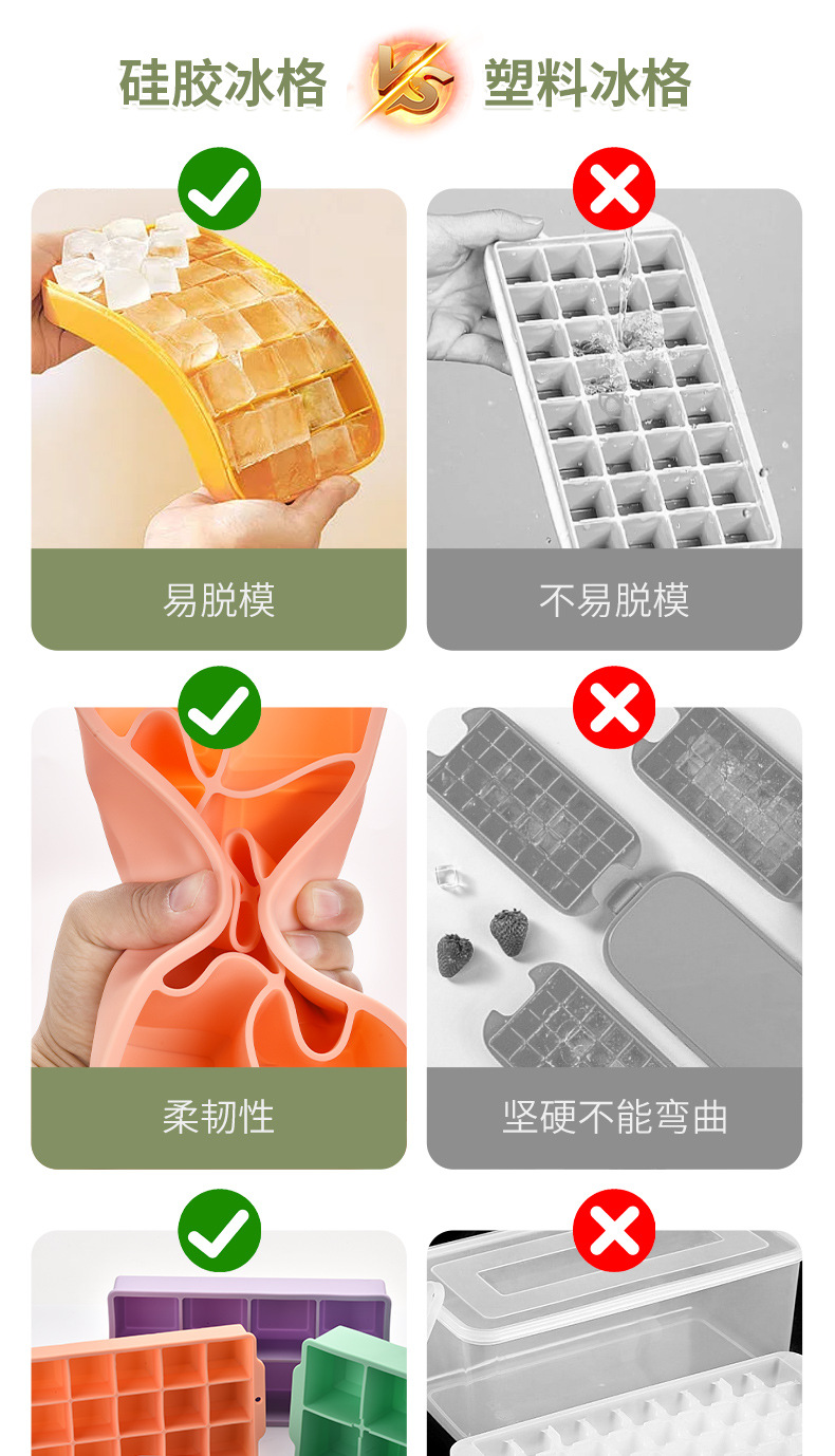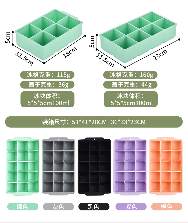Dalam stok nampan es lintas batas dengan tutup cetakan es kualitas makanan silikon weishishi cetakan es batu cetakan baki es persegi
