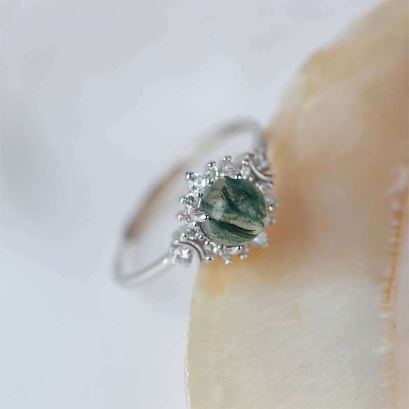 Amazon TikTok lintas batas untuk S925 perak cincin lumut hijau tanaman air batu akik mode Eropa dan Amerika temperamen mulia