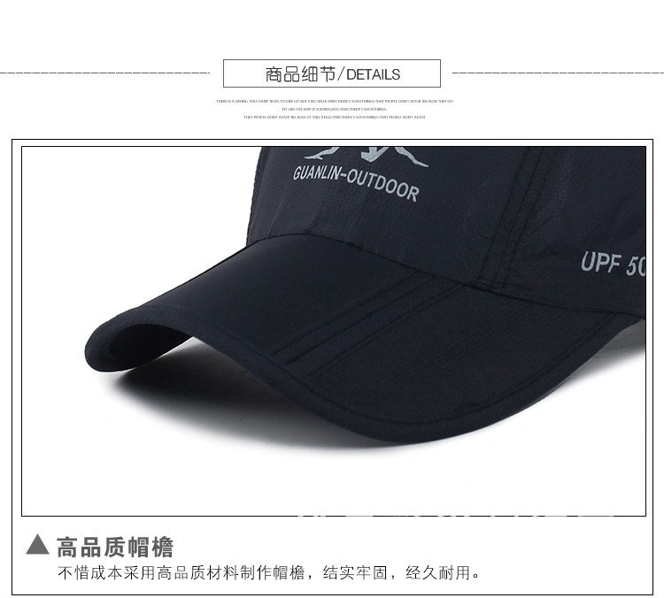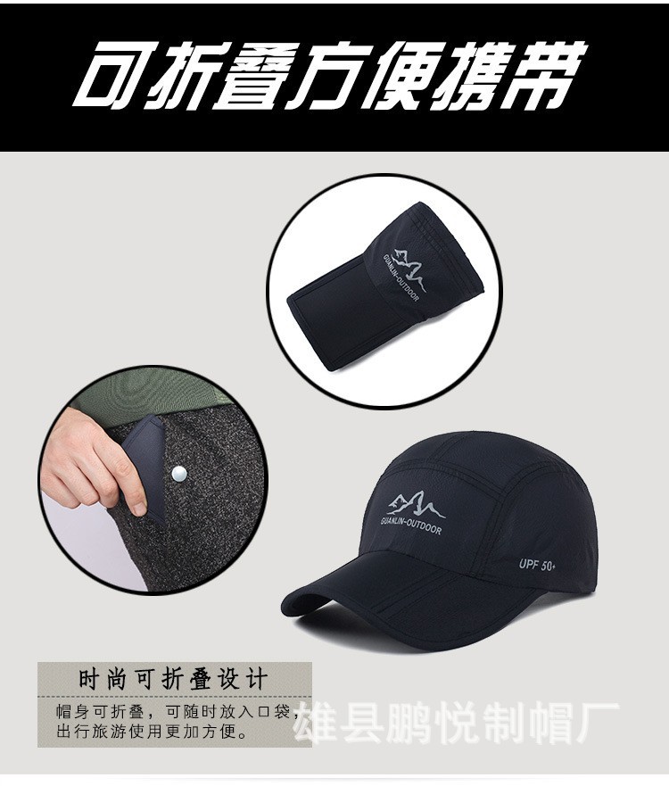 Topi bisbol lipat pria Korea, topi olahraga kain cepat kering luar ruangan, topi matahari perjalanan grosir musim panas dan semi