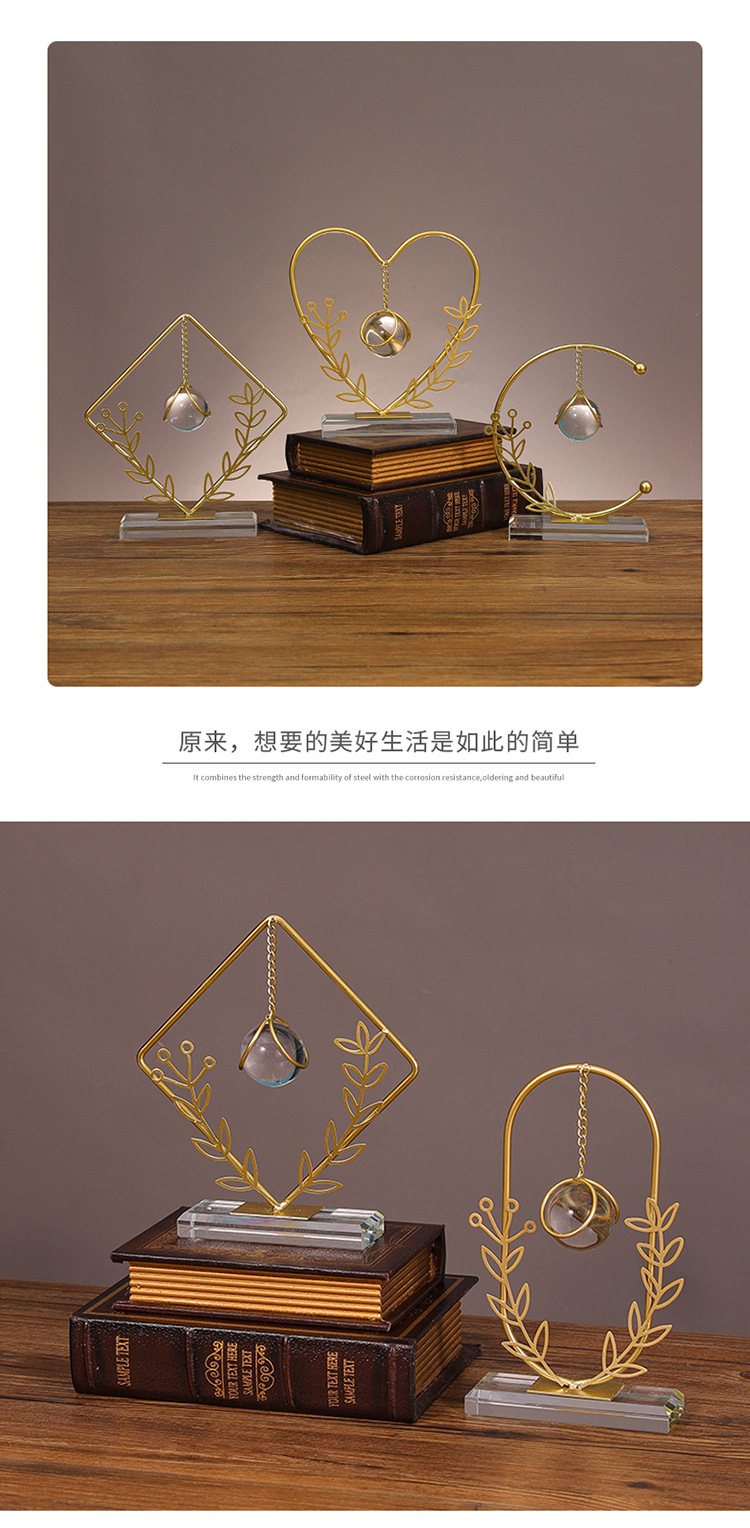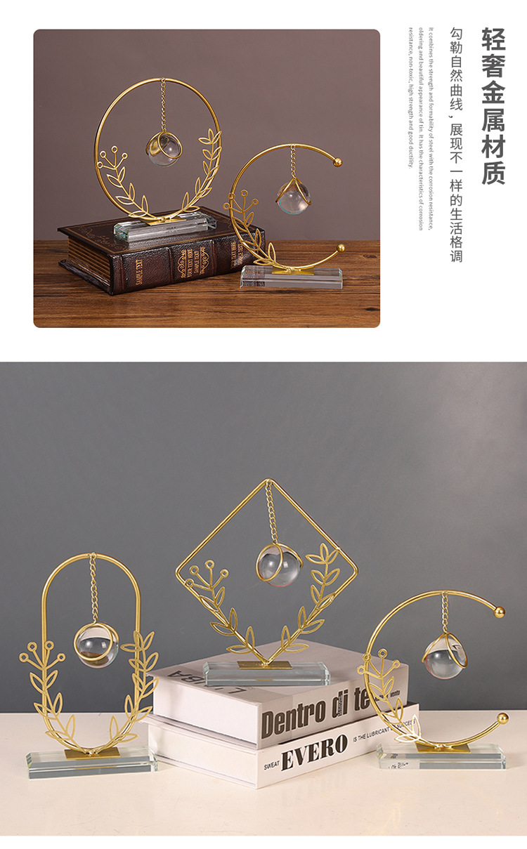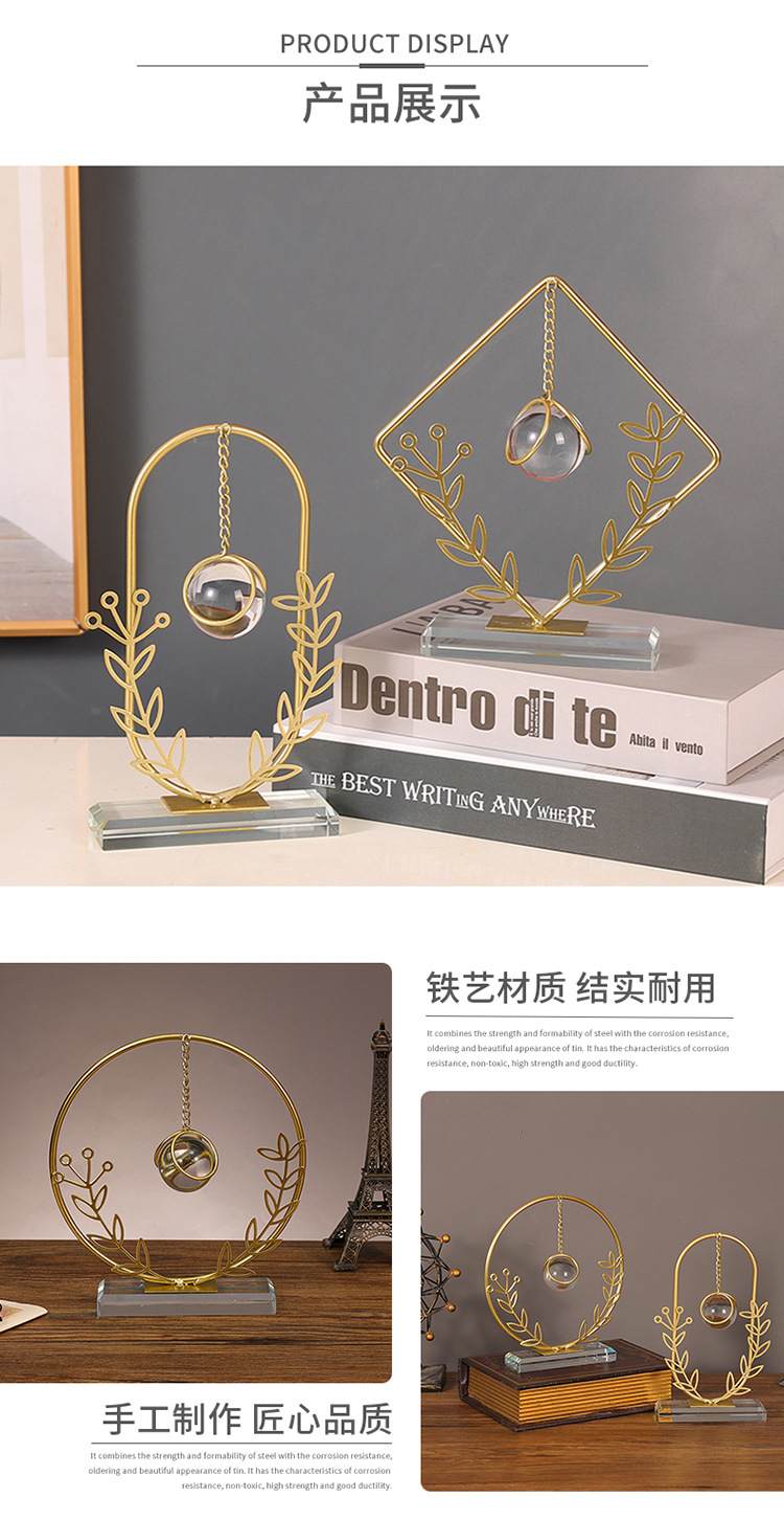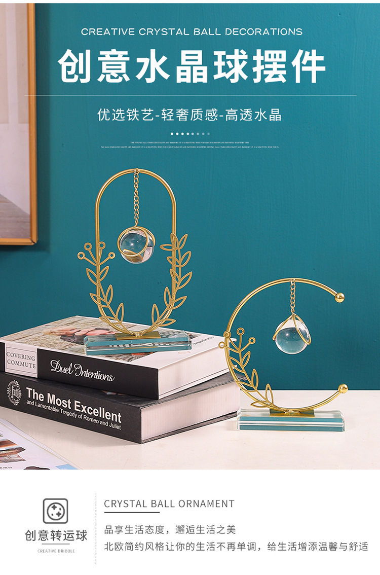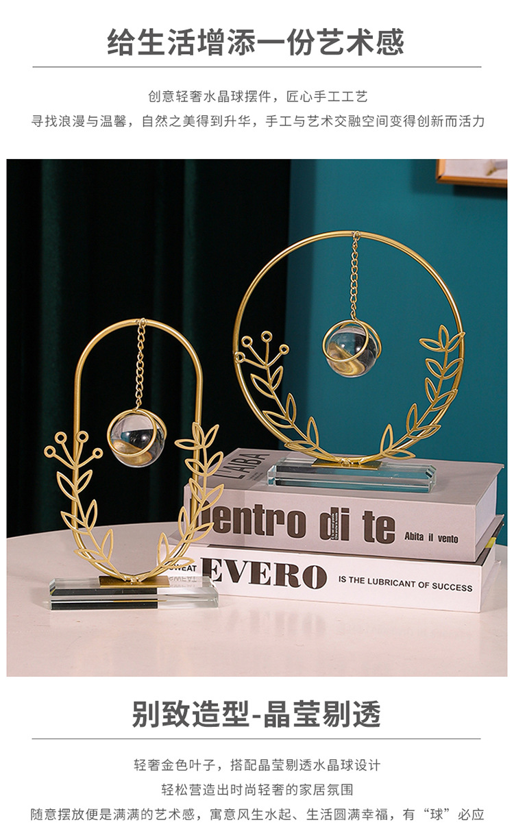 Dekorasi kantor kamar tidur ruang tamu rumah, kerajinan liontin bola kristal ornamen logam bulat Modern