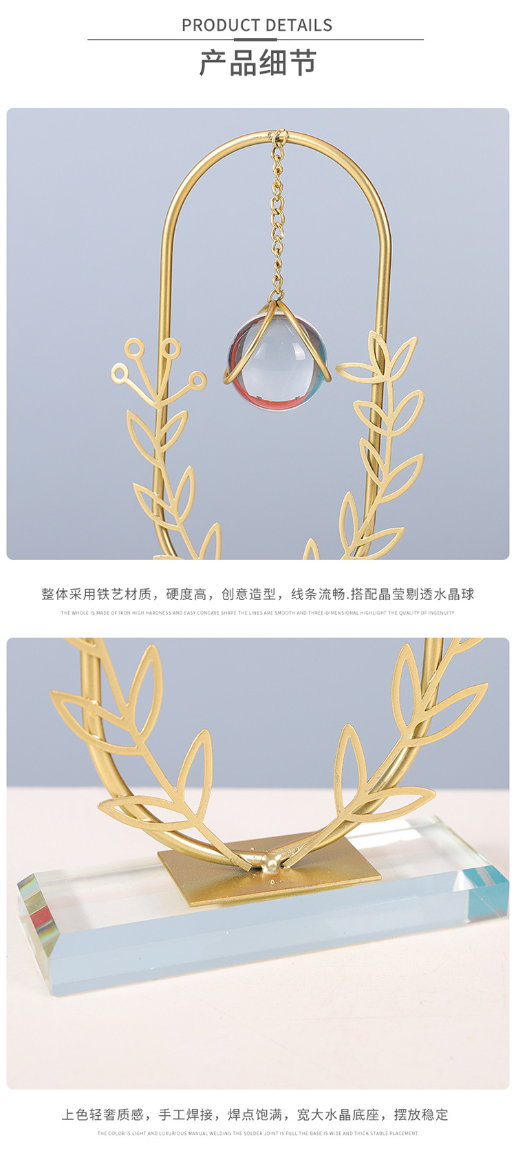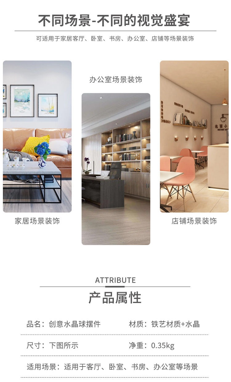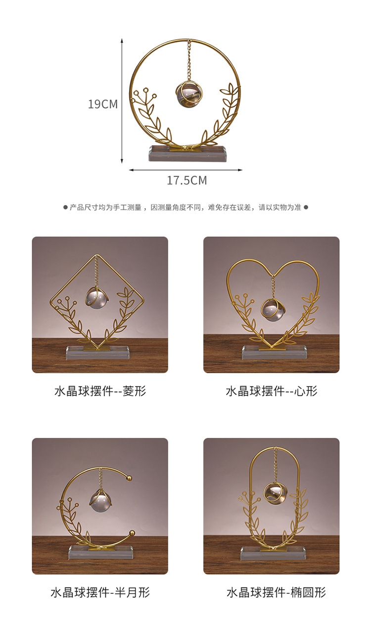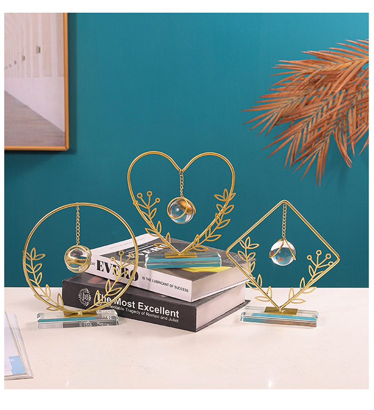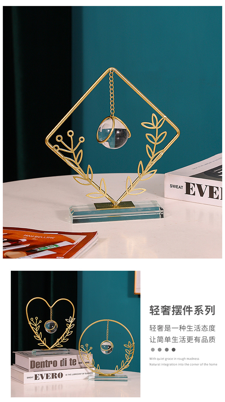 Dekorasi kantor kamar tidur ruang tamu rumah, kerajinan liontin bola kristal ornamen logam bulat Modern