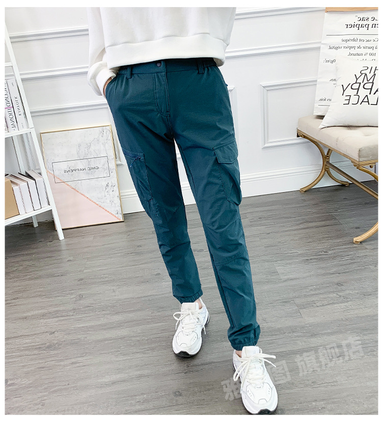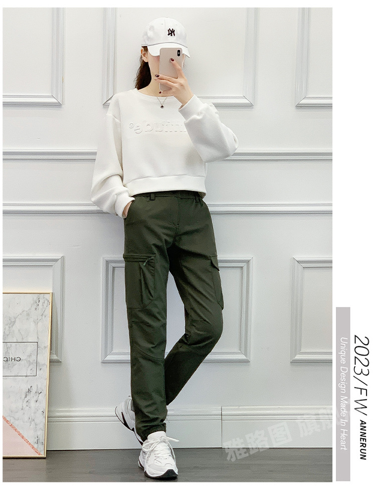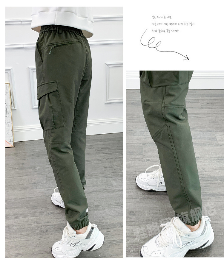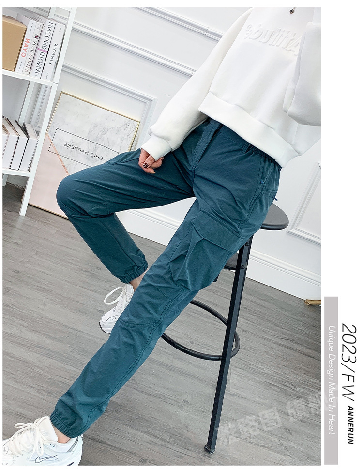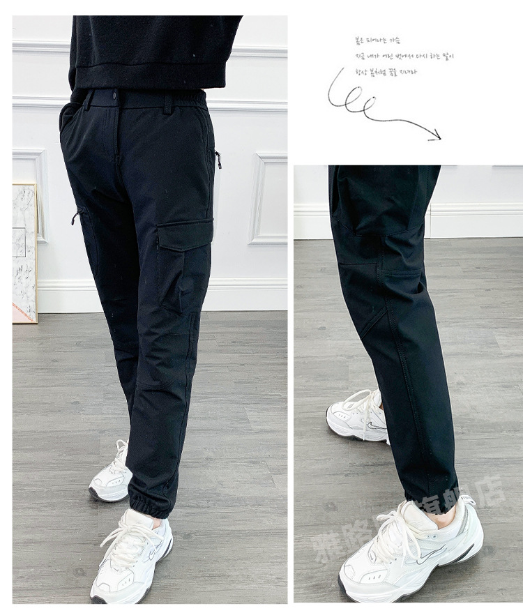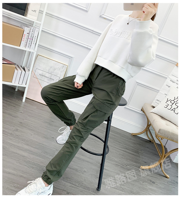 Overall multi tas diikat di pergelangan kaki wanita, celana cangkang lembut celana panjang perempuan bersirkulasi hangat tahan angin mendaki gunung musim gugur dan musim dingin
