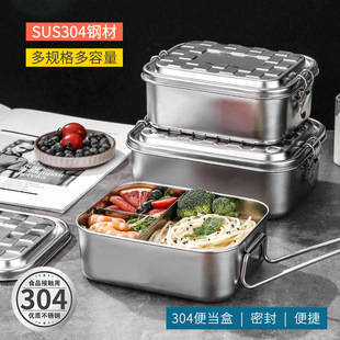 304不锈钢分格方形饭盒学生餐盒上班族双层便当盒密封便携保鲜盒