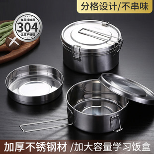 304不锈钢圆形饭盒日式双层分格学生便当盒带盖食堂打饭盒可加热