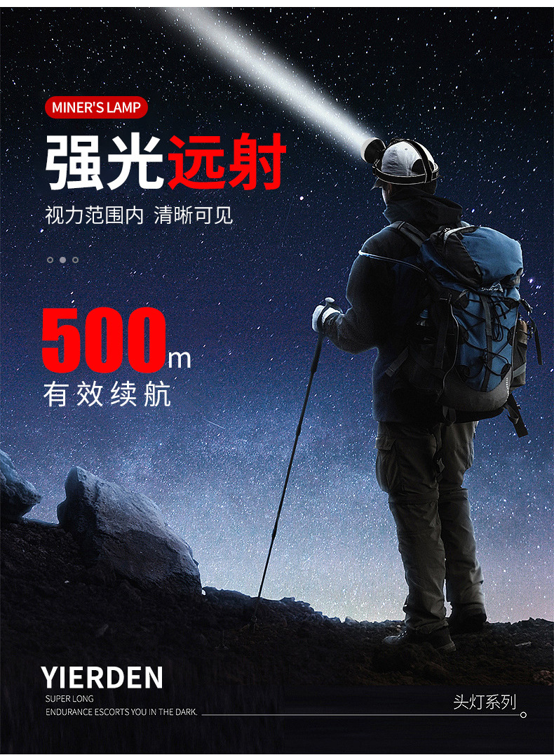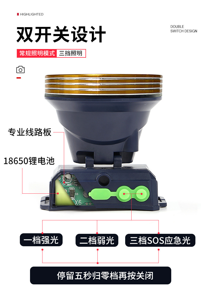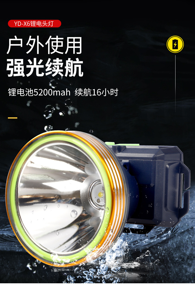 Yildeng X6 lampu depan led, senter kepala super terang pengisian daya tinggi P90 quad-core luar ruangan baterai lithium memancing