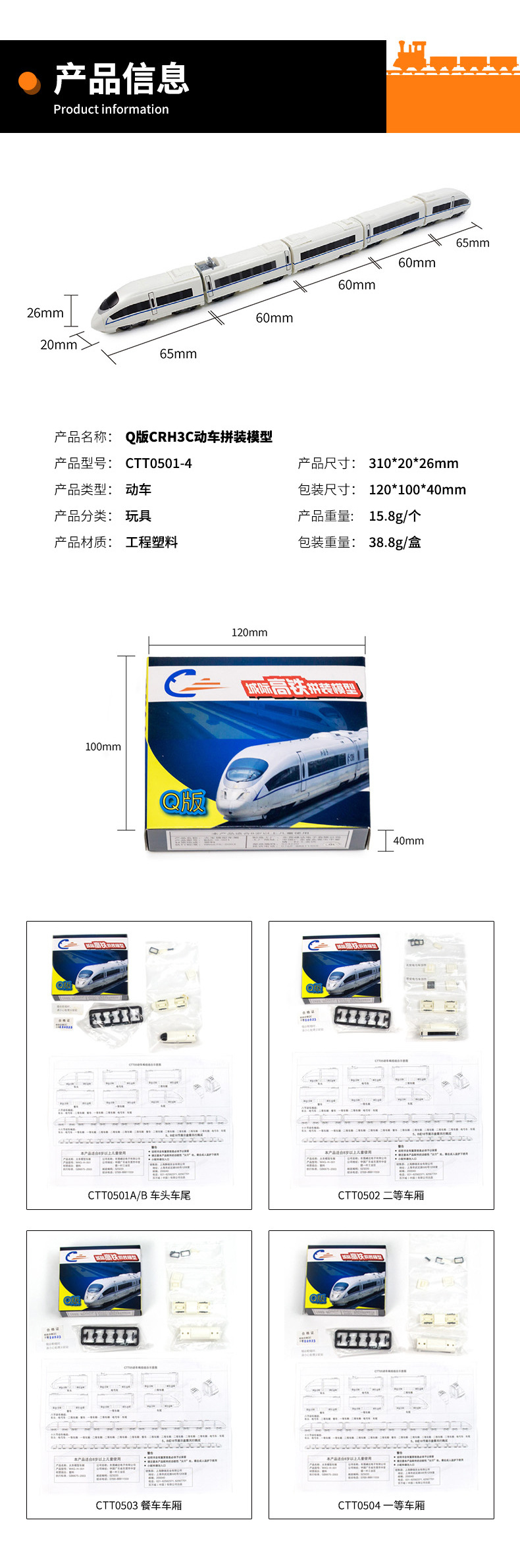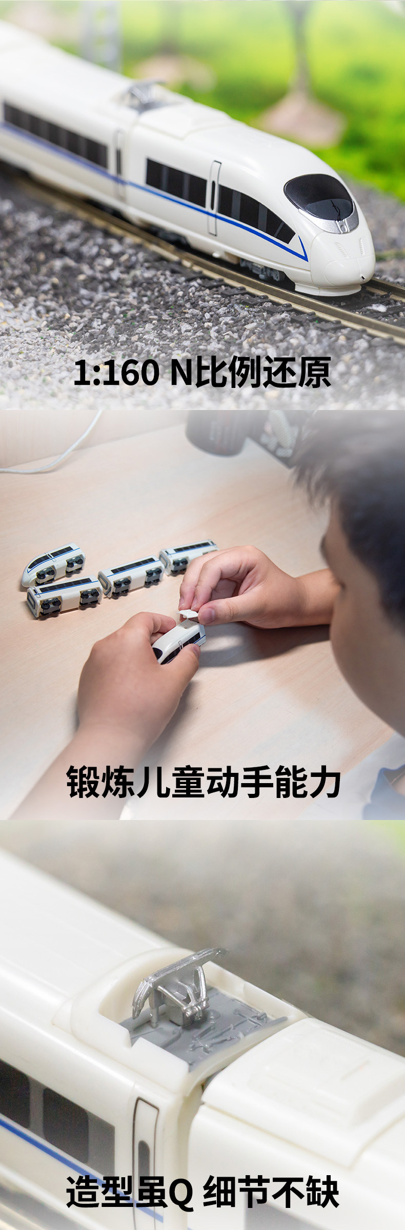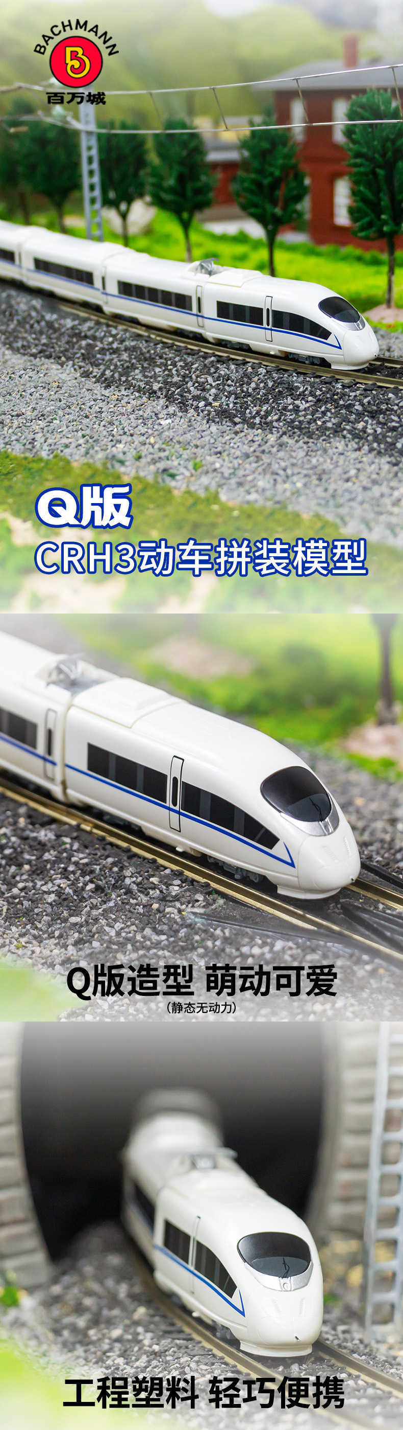 百万城Q版N比例CRH3高速动车组五节套装拼装火车模型高铁火车玩具