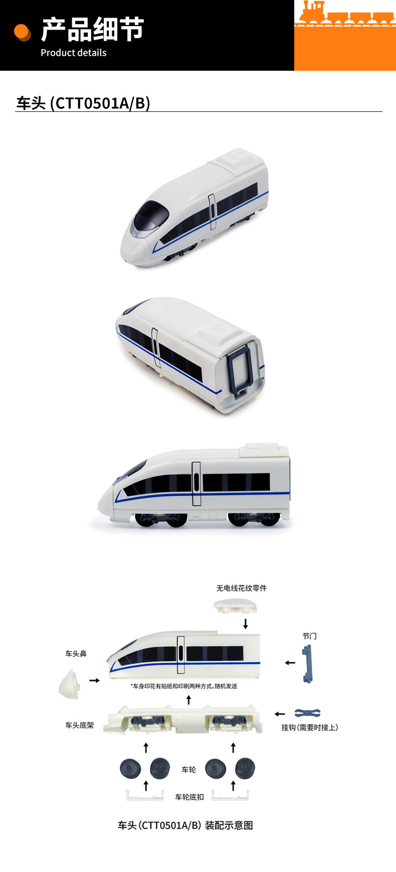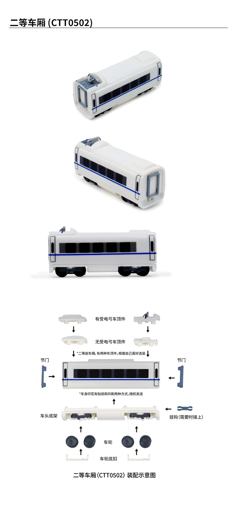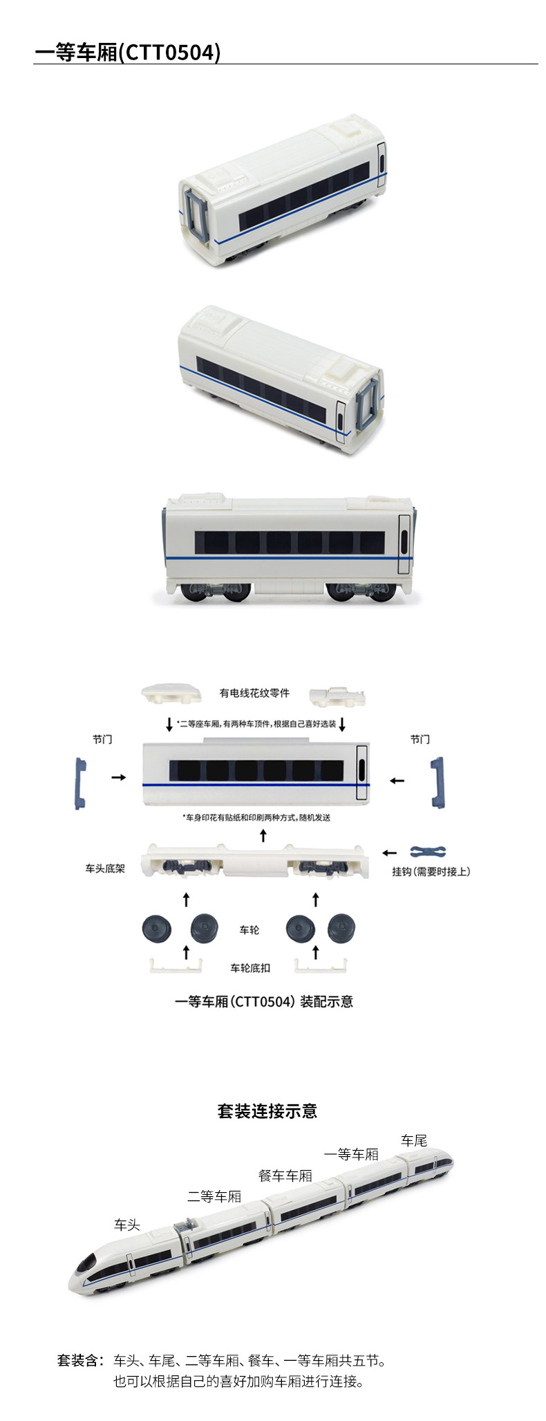 百万城Q版N比例CRH3高速动车组五节套装拼装火车模型高铁火车玩具