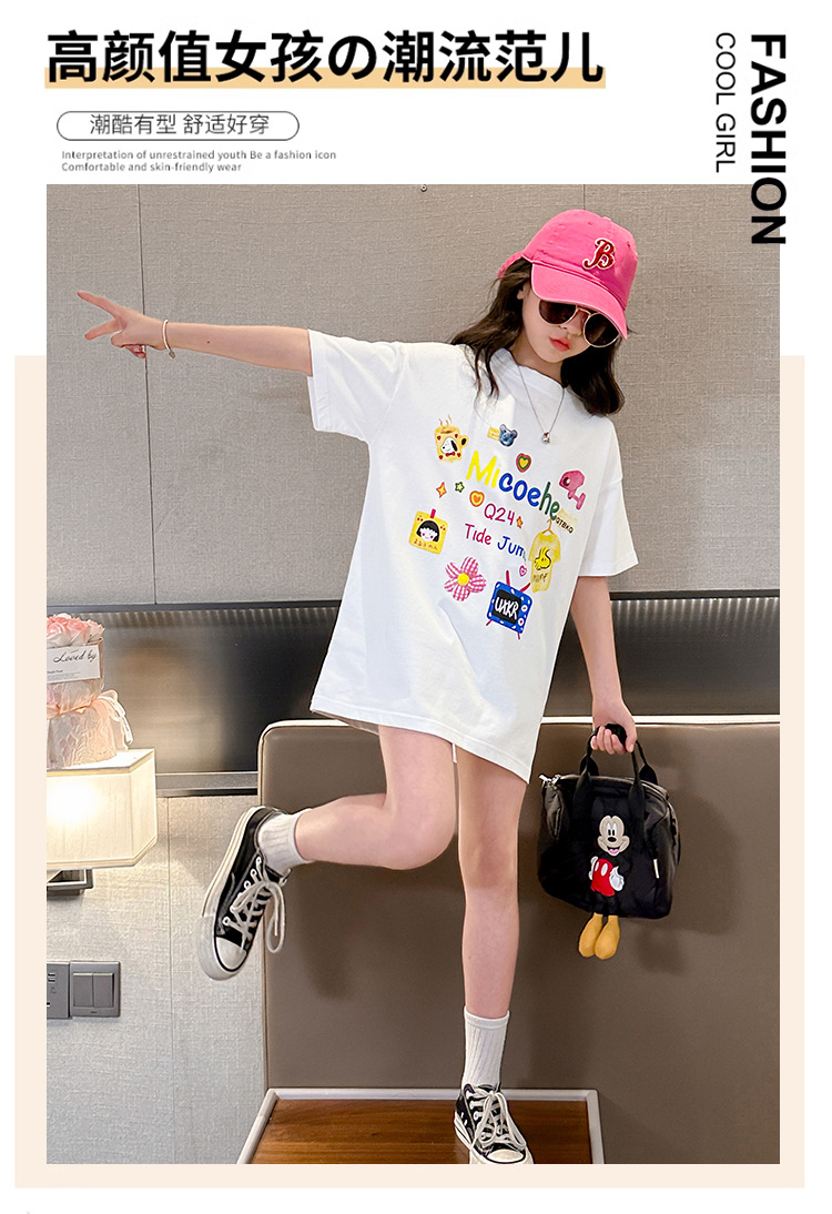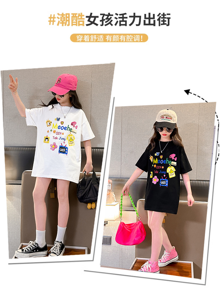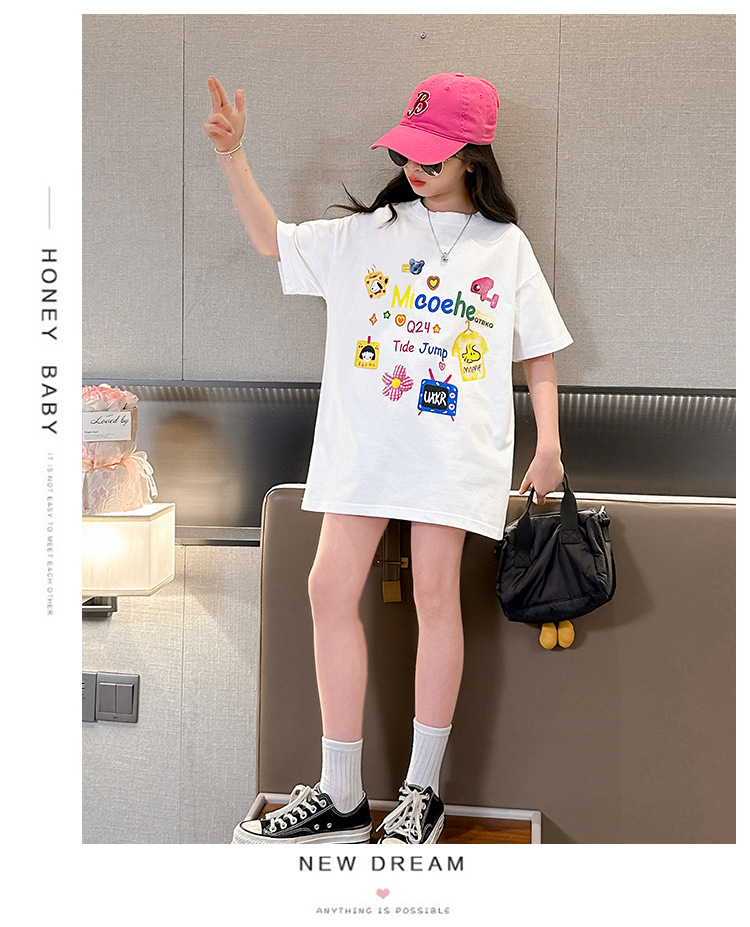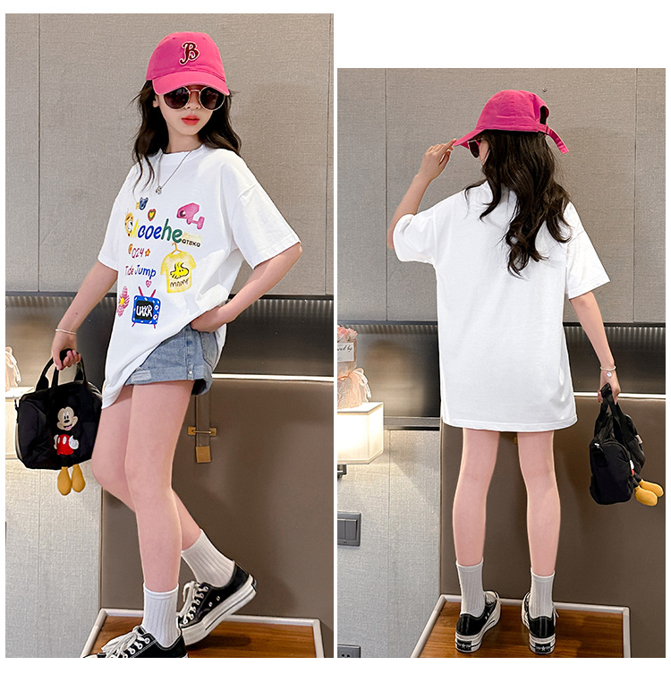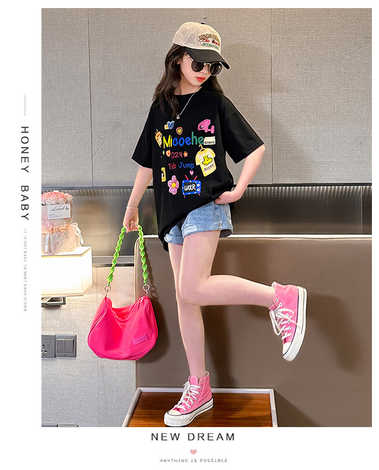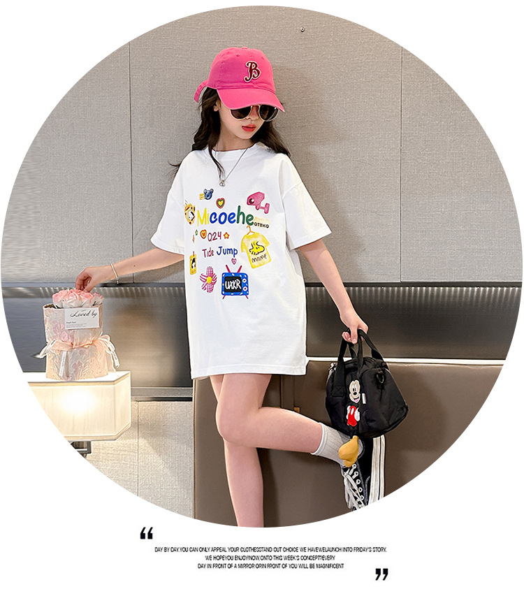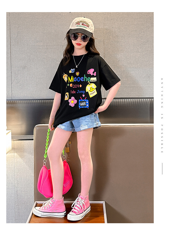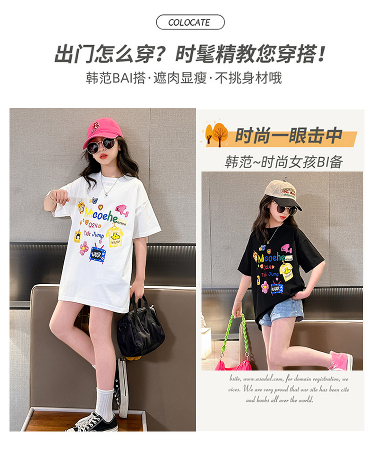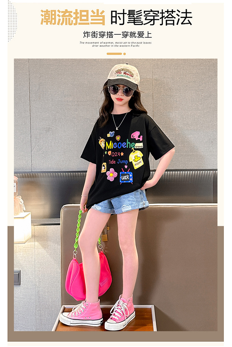 Kaus anak perempuan lengan pendek musim panas 2024, baju musim panas gaya Barat anak perempuan lengan setengah 9