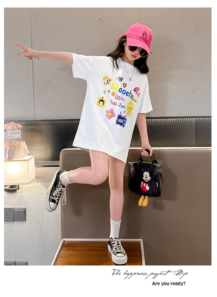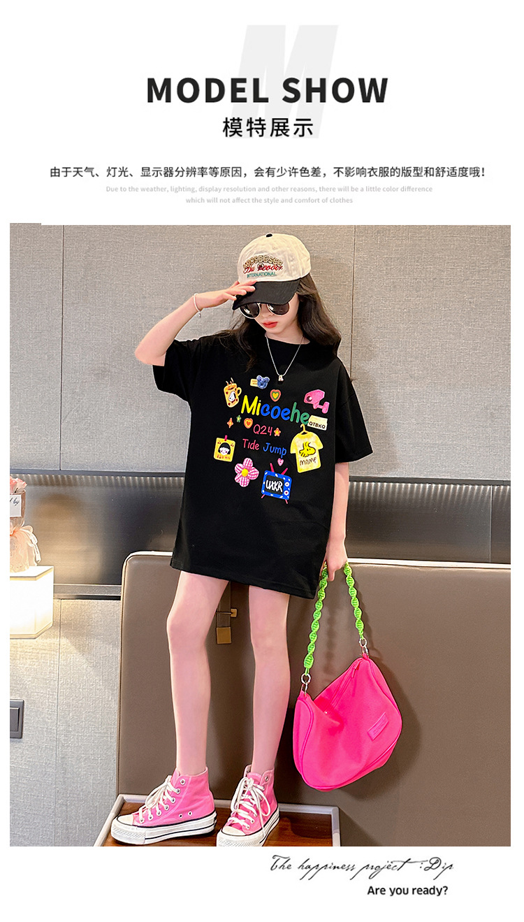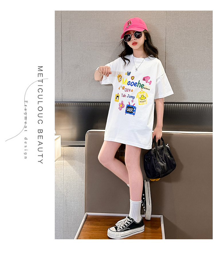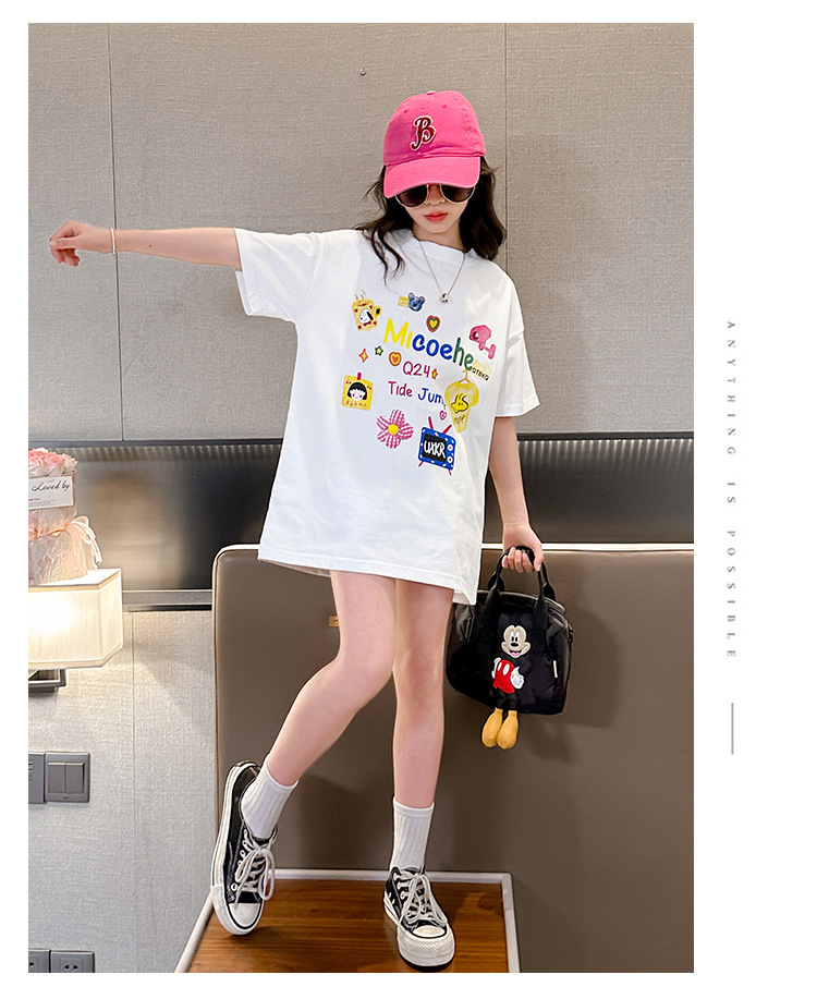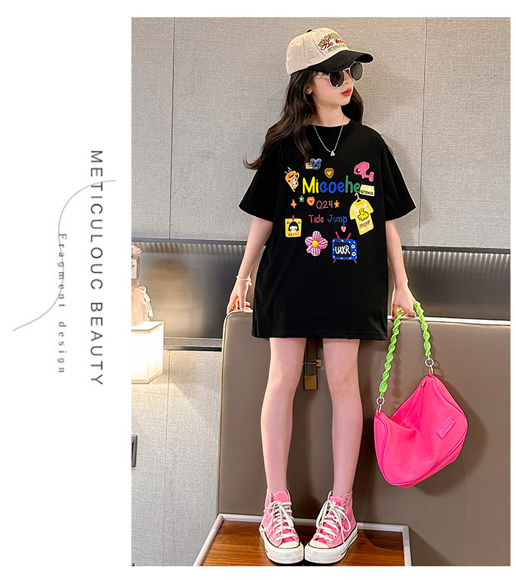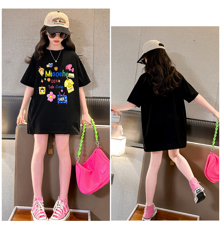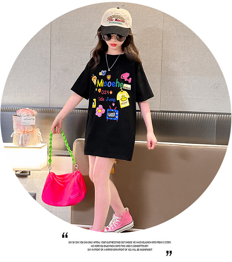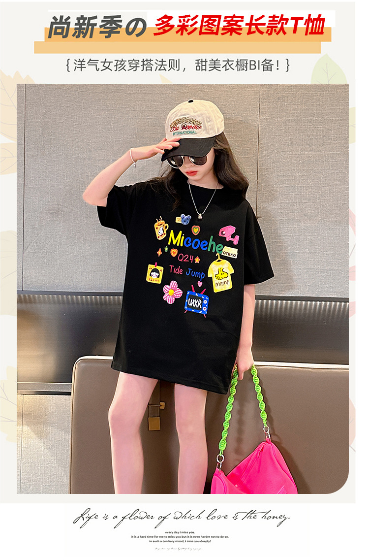 Kaus anak perempuan lengan pendek musim panas 2024, baju musim panas gaya Barat anak perempuan lengan setengah 9