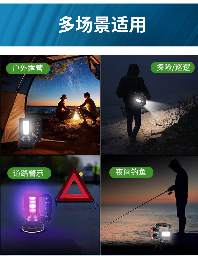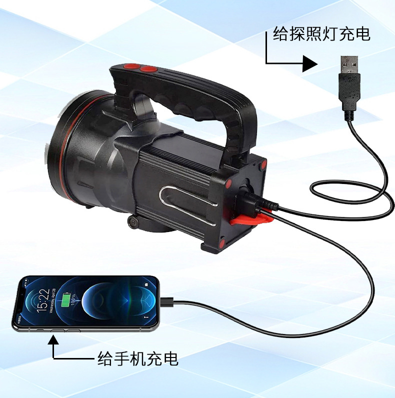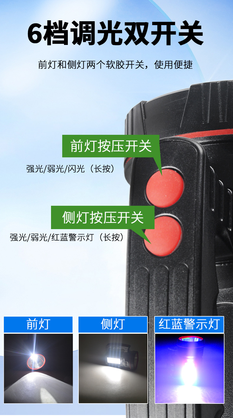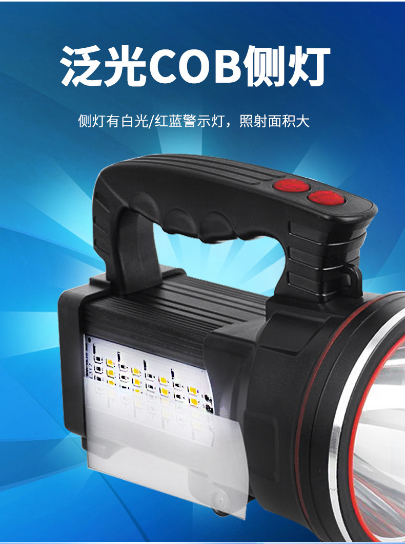 Lampu senter LED kuat tahan lama, lampu sorot portabel pengisian daya tahan lama, lampu darurat multifungsi patroli super terang