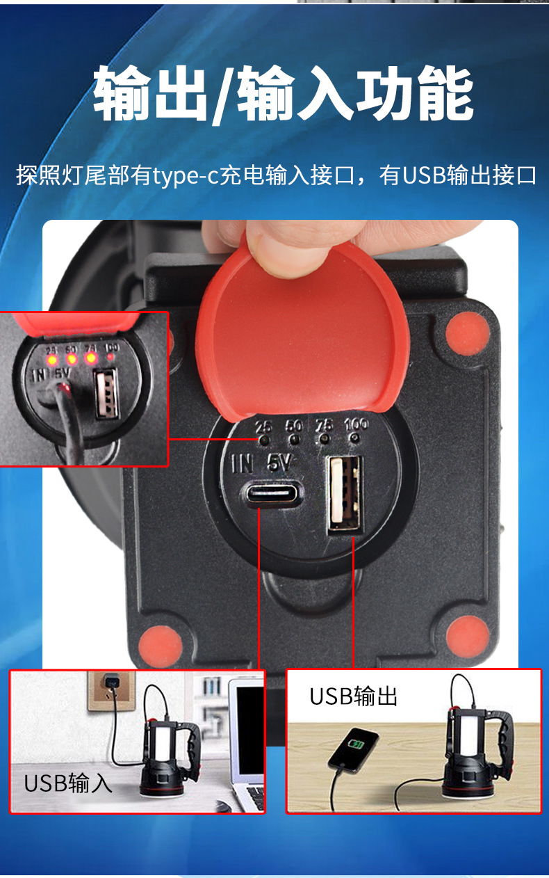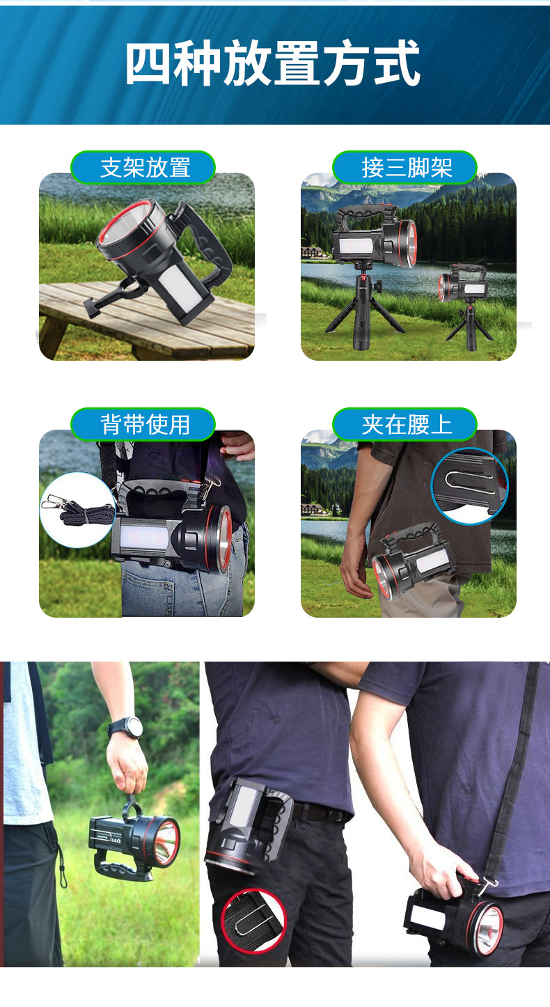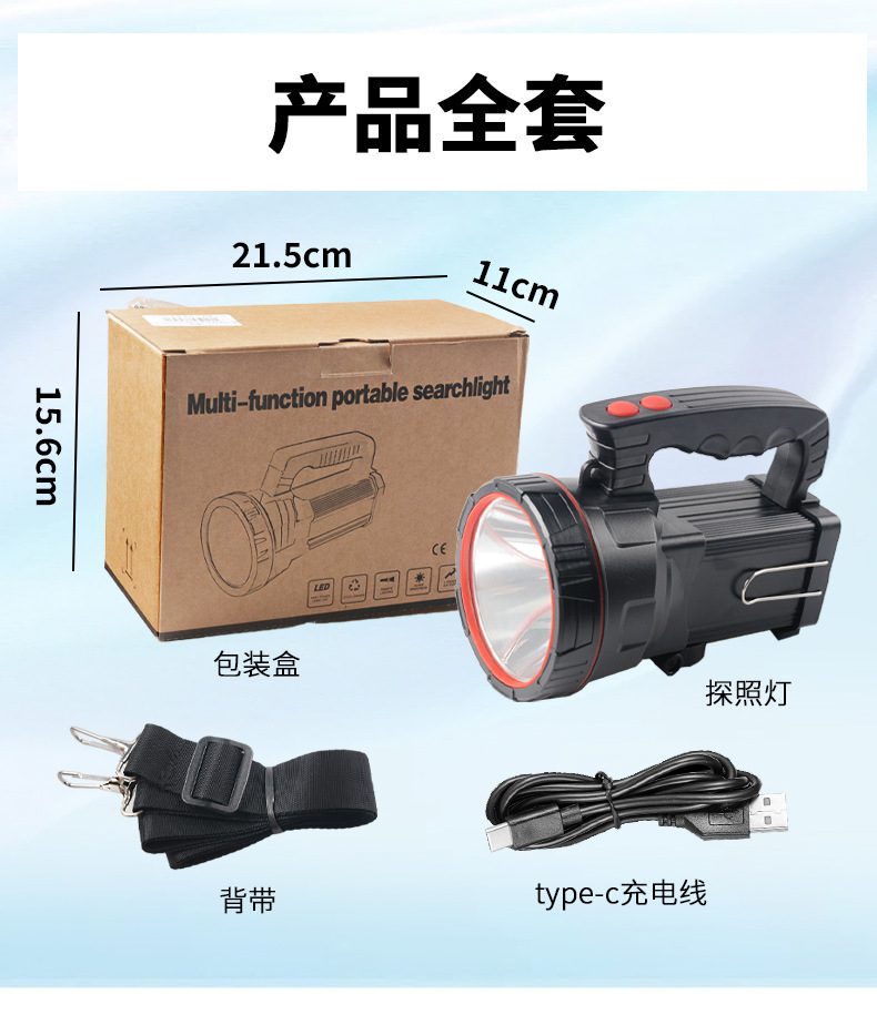 Lampu senter LED kuat tahan lama, lampu sorot portabel pengisian daya tahan lama, lampu darurat multifungsi patroli super terang
