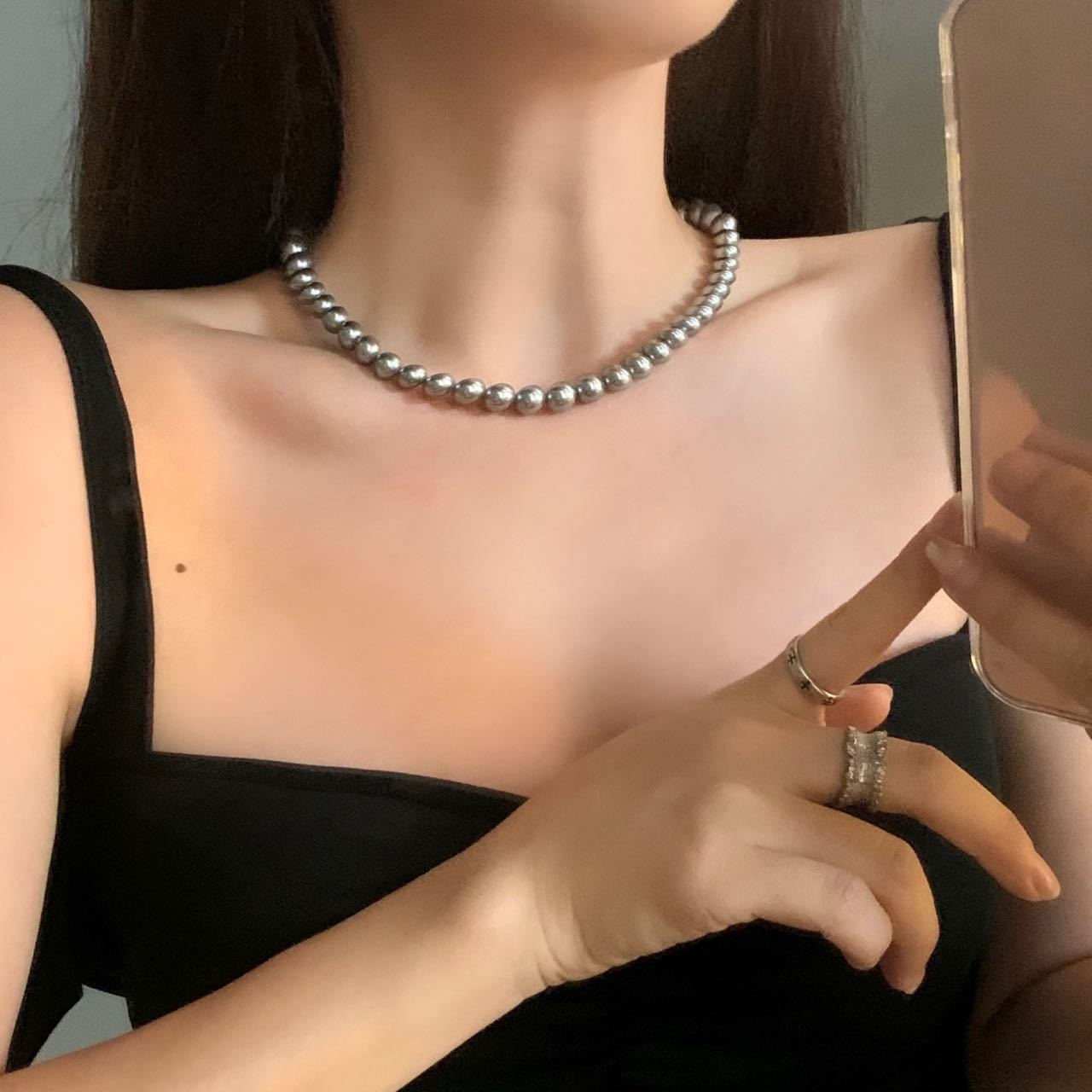 Ni Ni kalung manik-manik Model sama, Kalung mutiara abu-abu terang, rantai sweter kelas tinggi mewah ringan, rantai klavikula butir nasi kecil