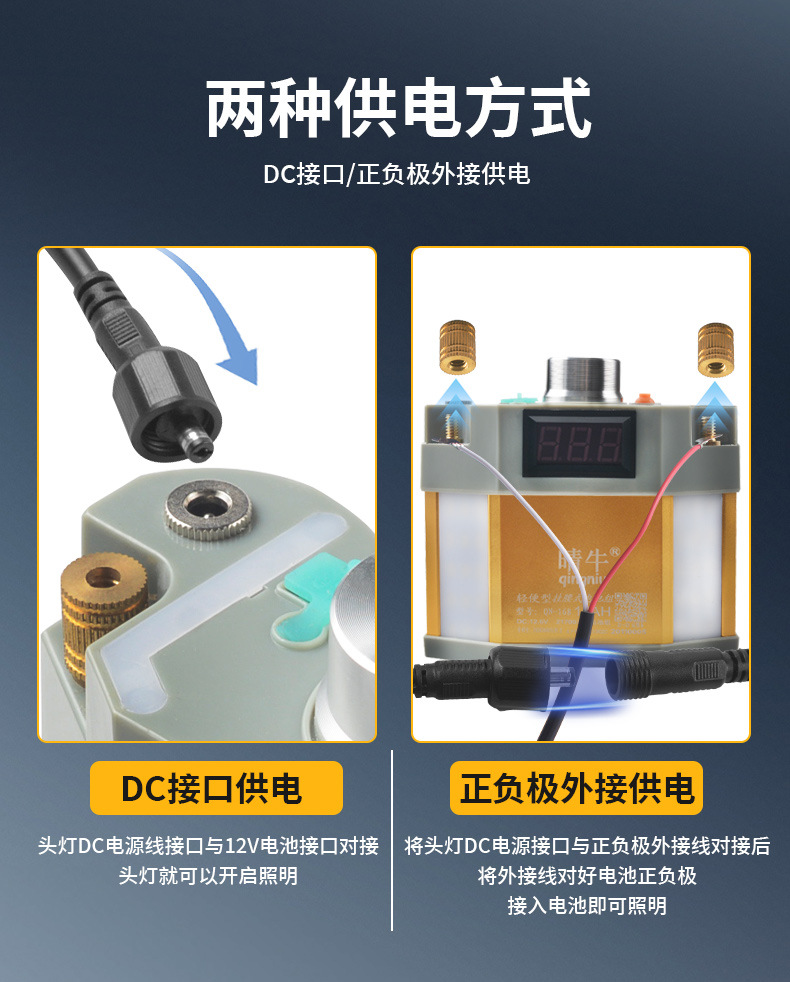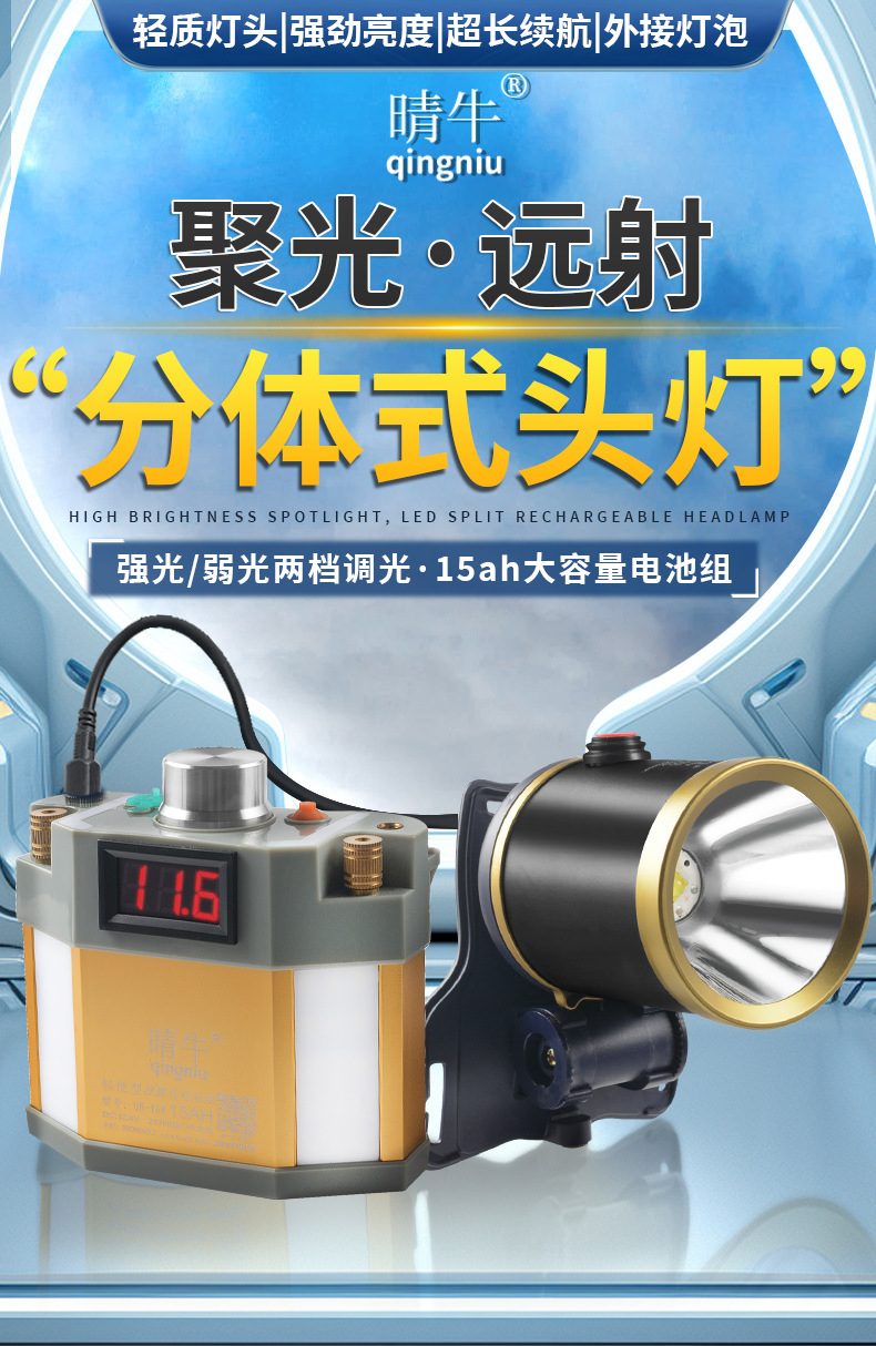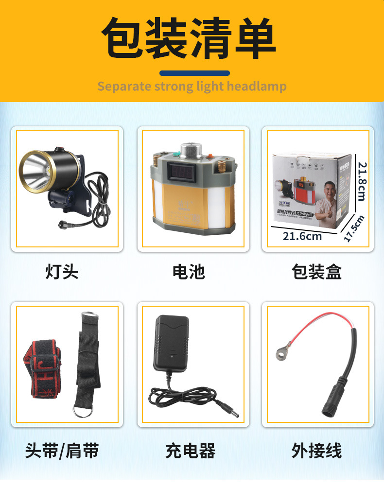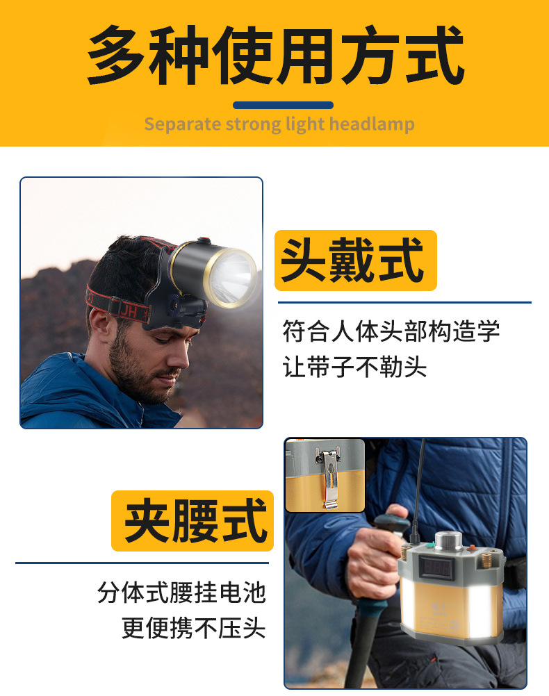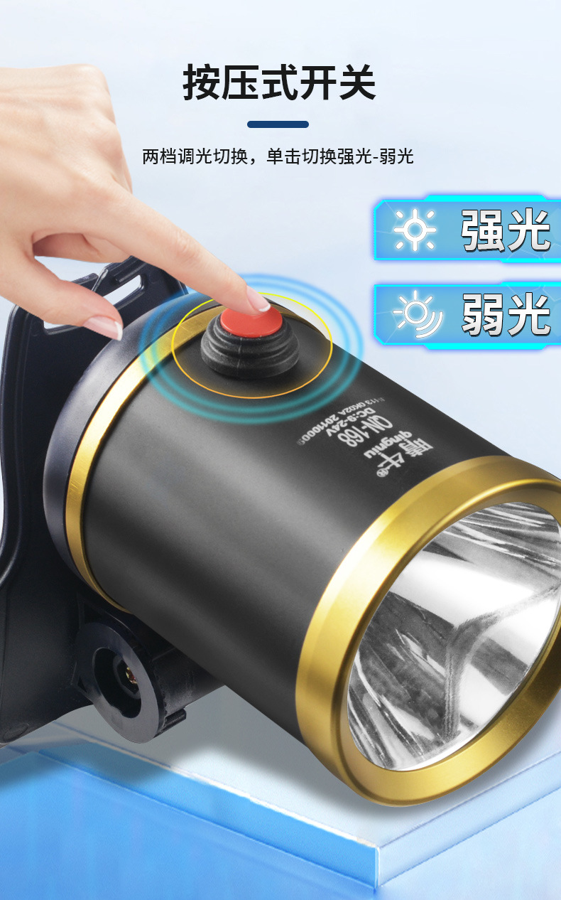 Lampu depan LED kuat jarak jauh, lampu penerangan luar ruangan anti air baterai lithium 12V, lampu kepala penambang terpasang di kepala, super terang