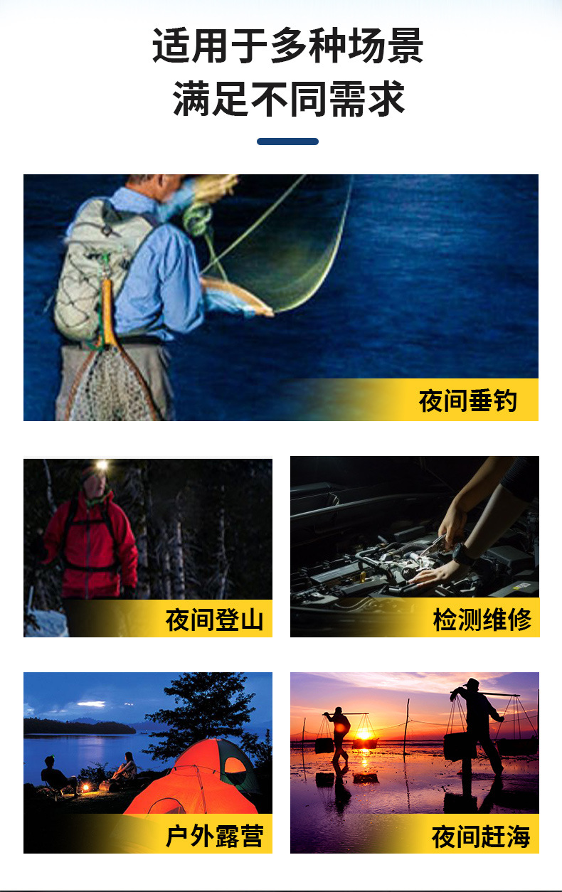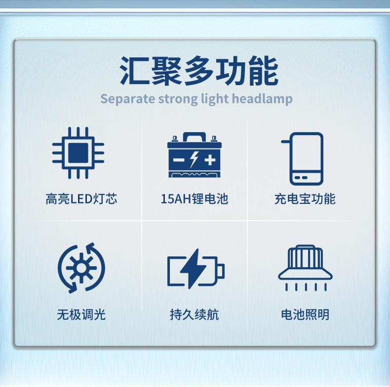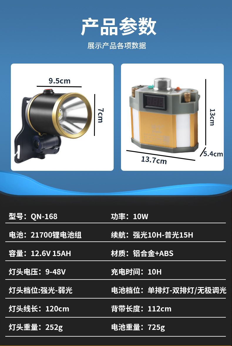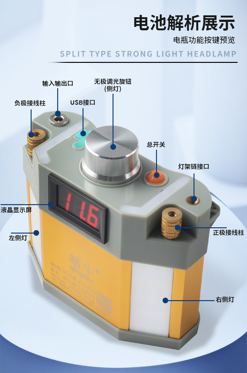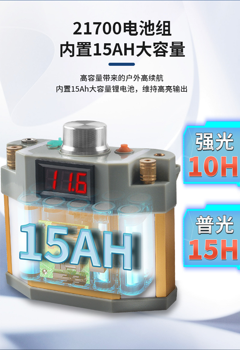 Lampu depan LED kuat jarak jauh, lampu penerangan luar ruangan anti air baterai lithium 12V, lampu kepala penambang terpasang di kepala, super terang
