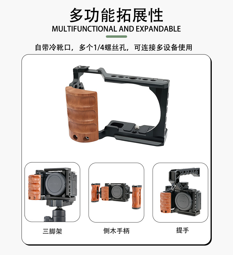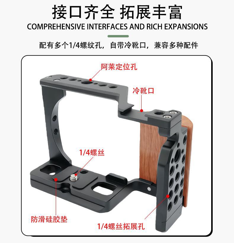 Cage multi-posisi untuk Sony ZV-E10, ekspansi Song zve10, rangka pelindung dengan pegangan kayu
