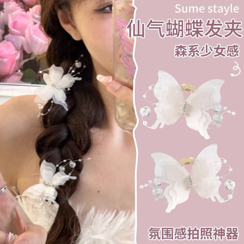 Jepit Kecil Kupu-kupu Spin Mutiara Gaya Mori Jepit Wanita Super Peri Gadis Jepit Jepit Sisi Sisi Dahi Wanita Jepit Rambut Poni Rusak