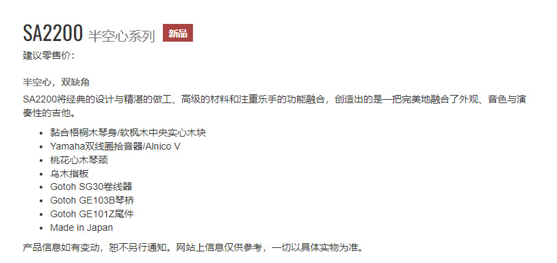 Yamaha SA2200 gitar listrik semi-hollow, gitar jazz sudut hilang ganda, gitar asli Jepang