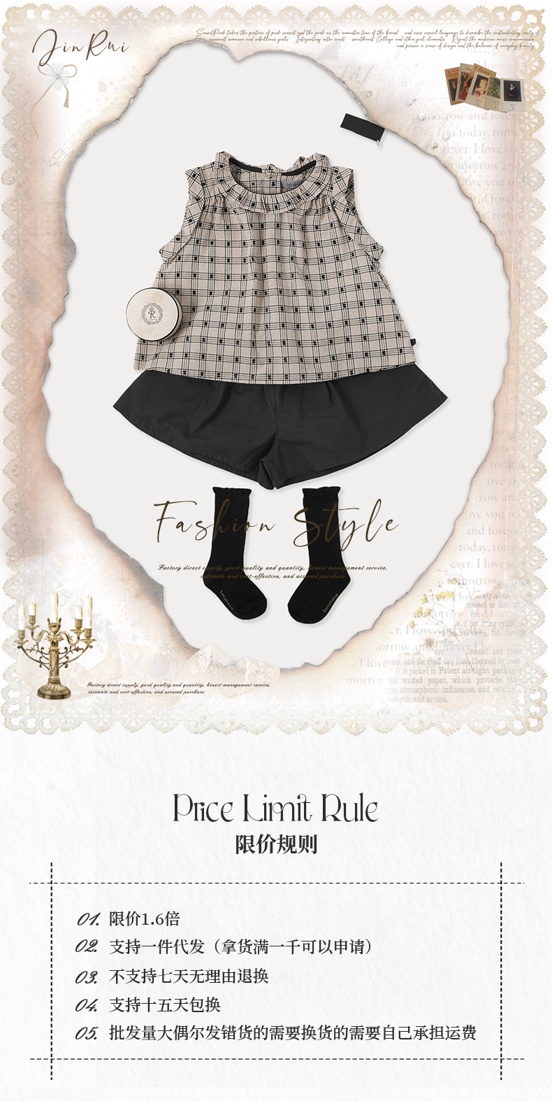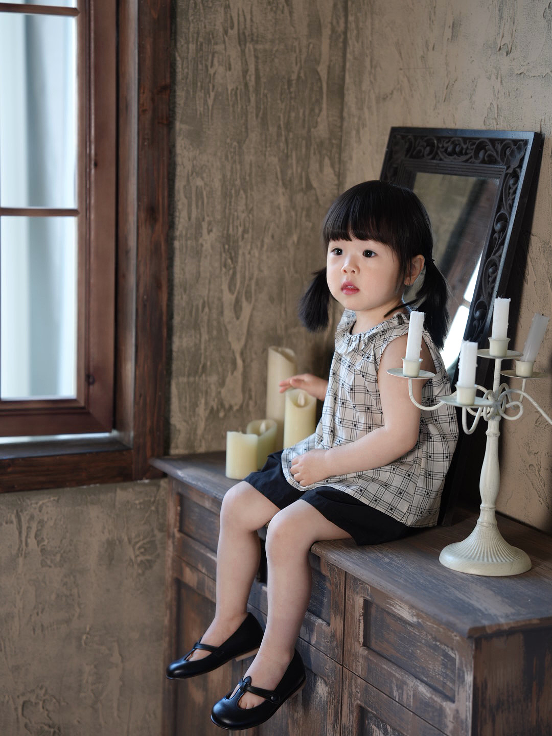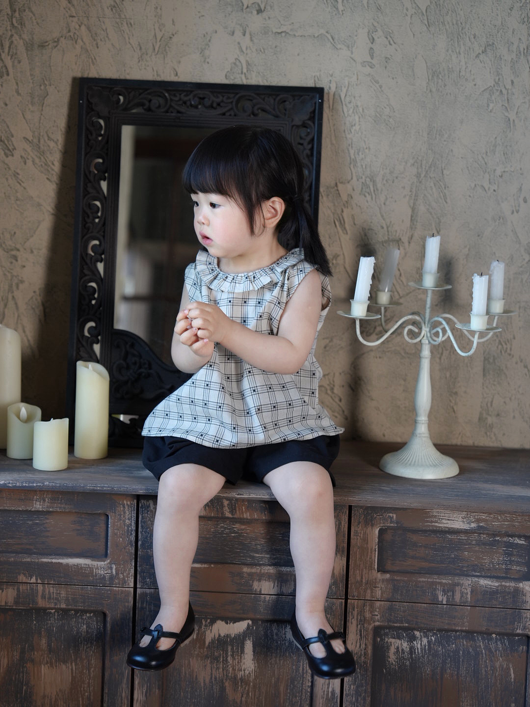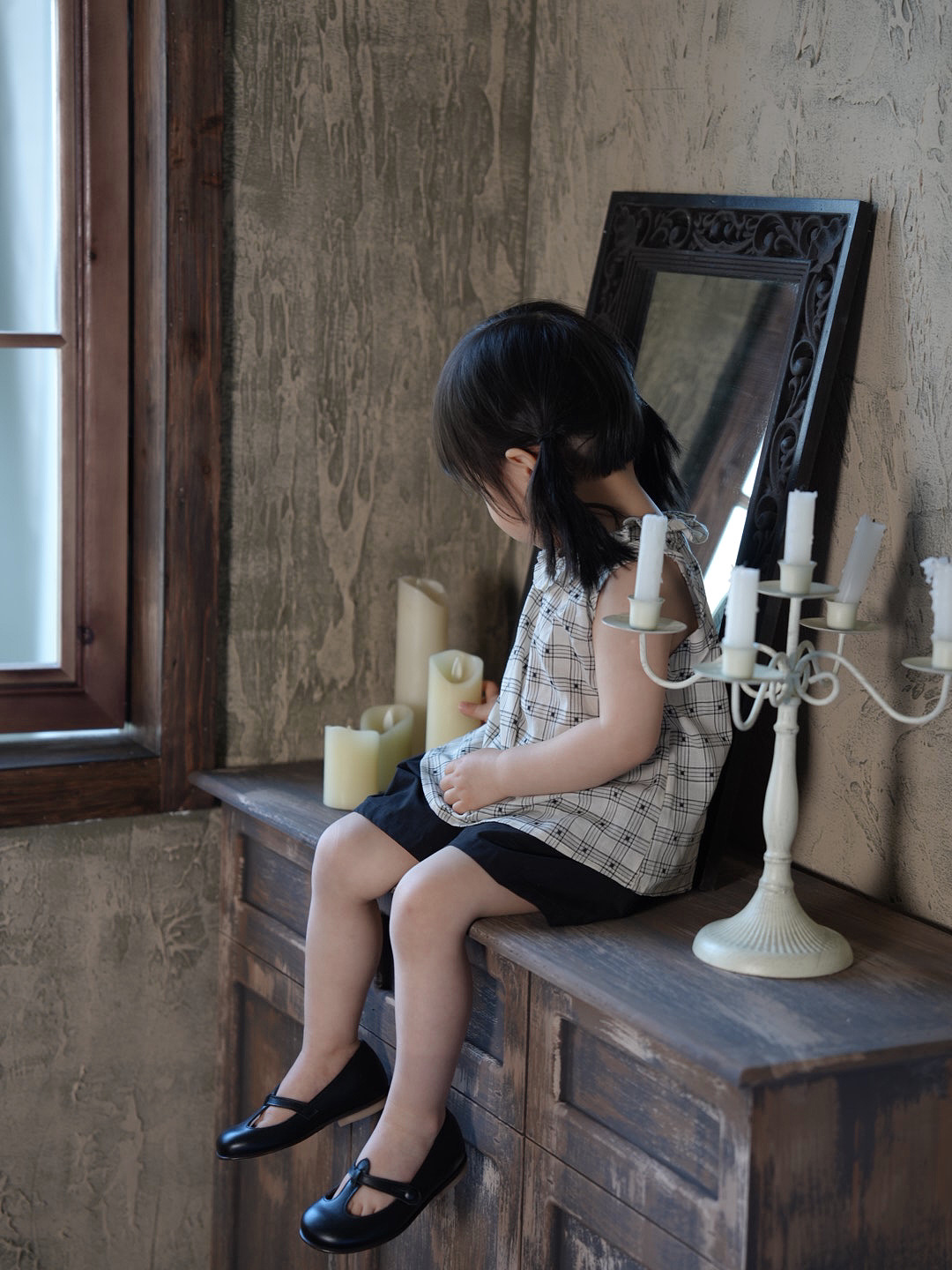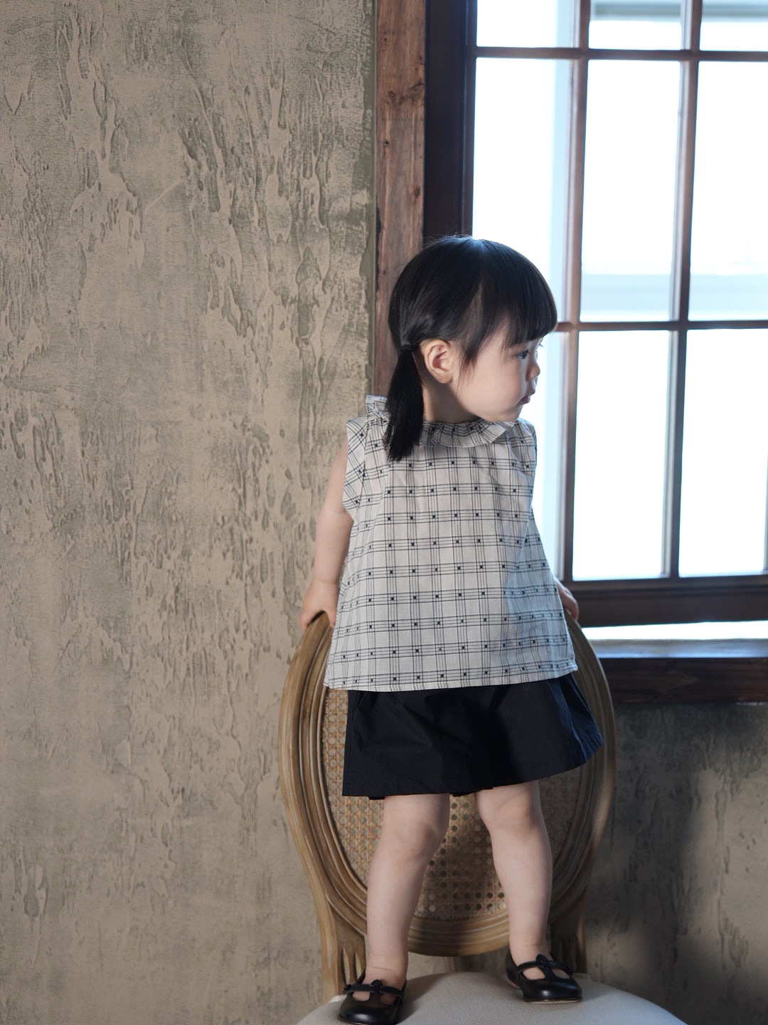 Pakaian anak perempuan bergaya Jepang BENE, model sama, kemeja kotak-kotak tanpa lengan dengan potongan, celana pendek katun dicuci, menyerap keringat