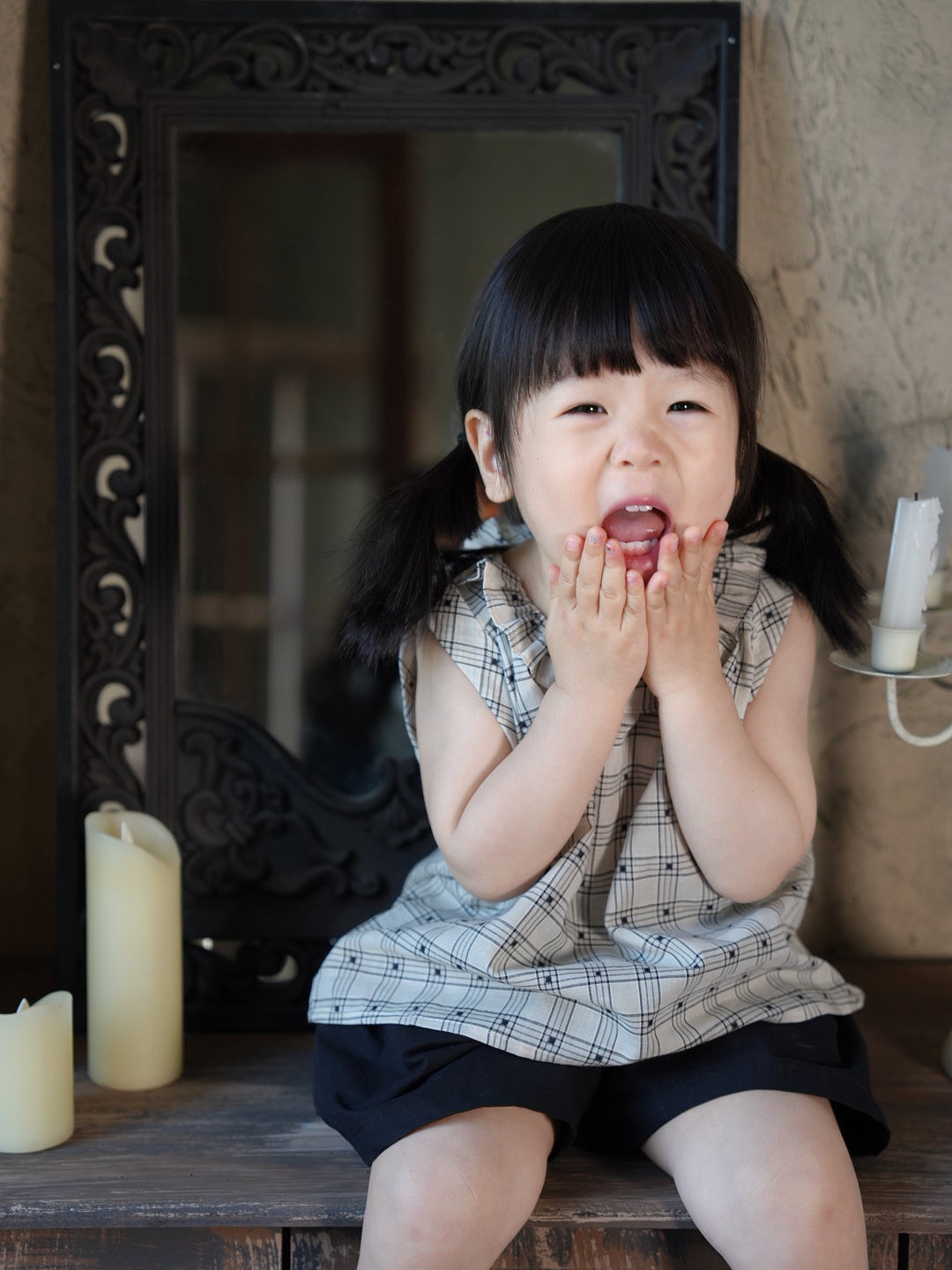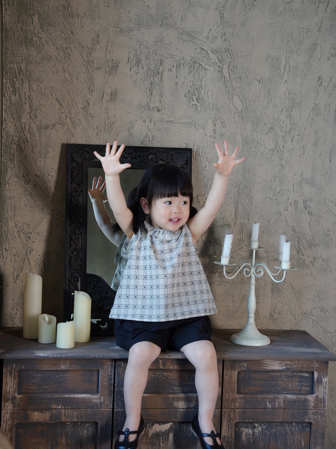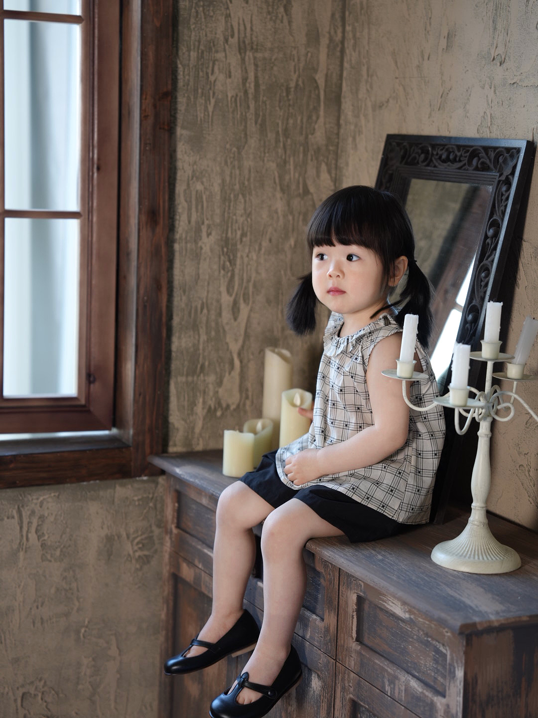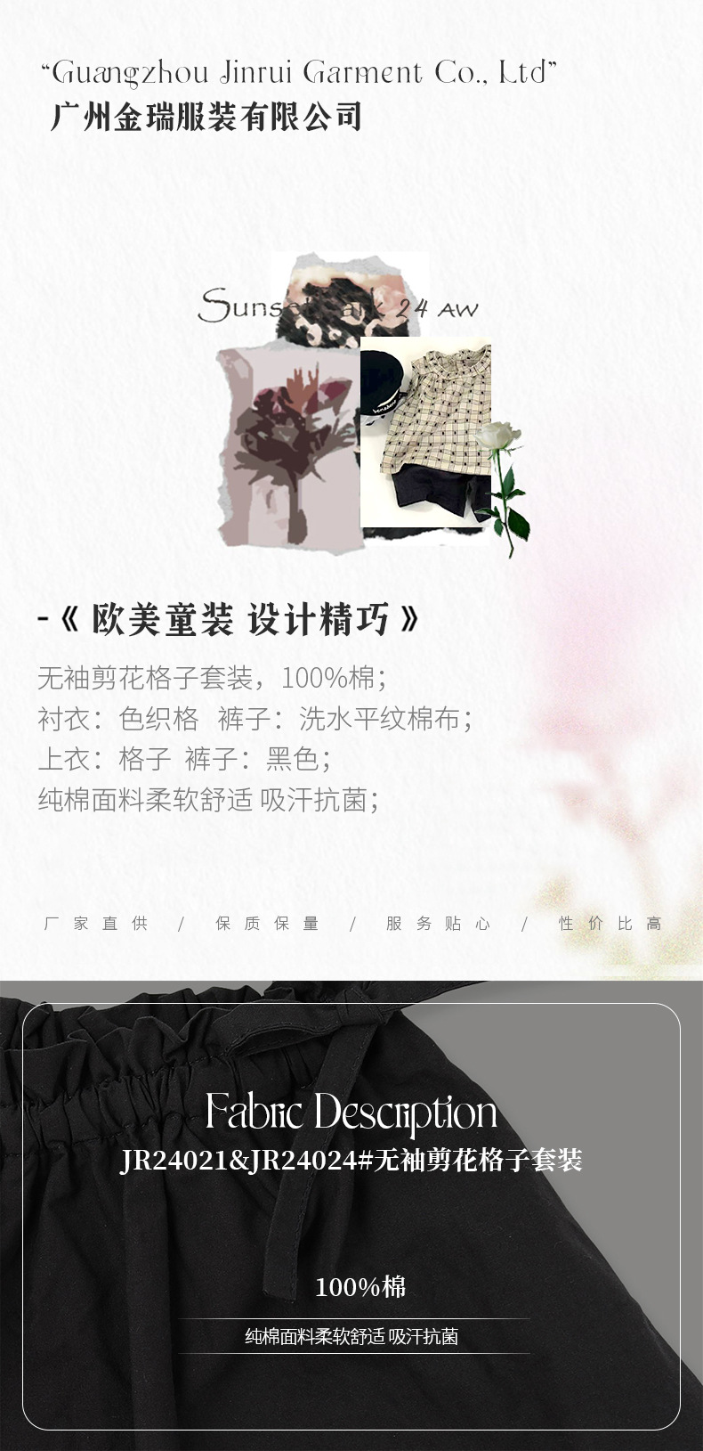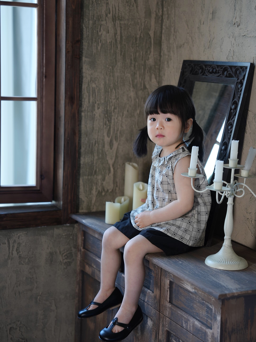 Pakaian anak perempuan bergaya Jepang BENE, model sama, kemeja kotak-kotak tanpa lengan dengan potongan, celana pendek katun dicuci, menyerap keringat