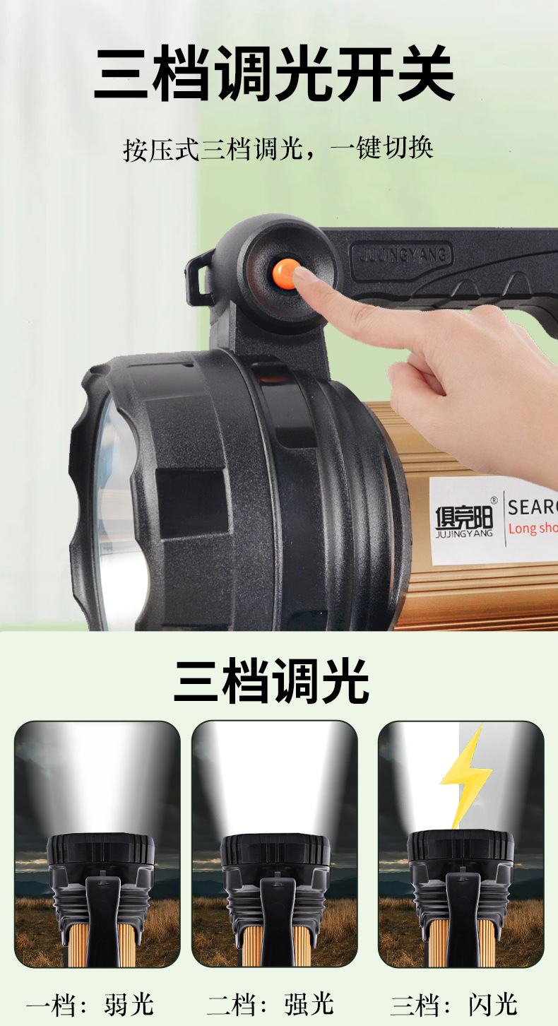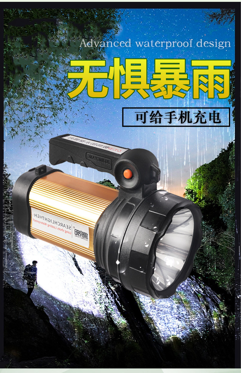 Lampu senter LED super terang, lampu yang kuat, super terang, dapat diisi ulang rumah tangga luar ruangan, lampu darurat portabel, lampu patroli memancing malam