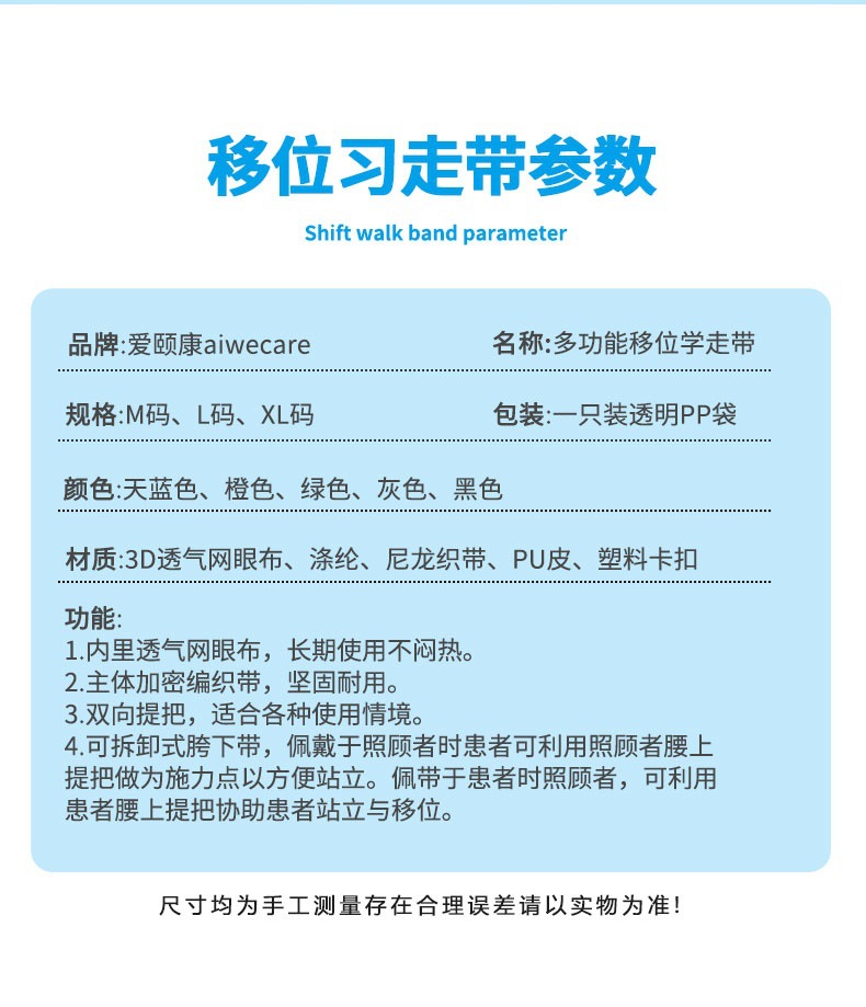 Belt Pergeseran Perawatan Belt Bantu Bangun Belt Bantu Berjalan Belt untuk Orang Tua