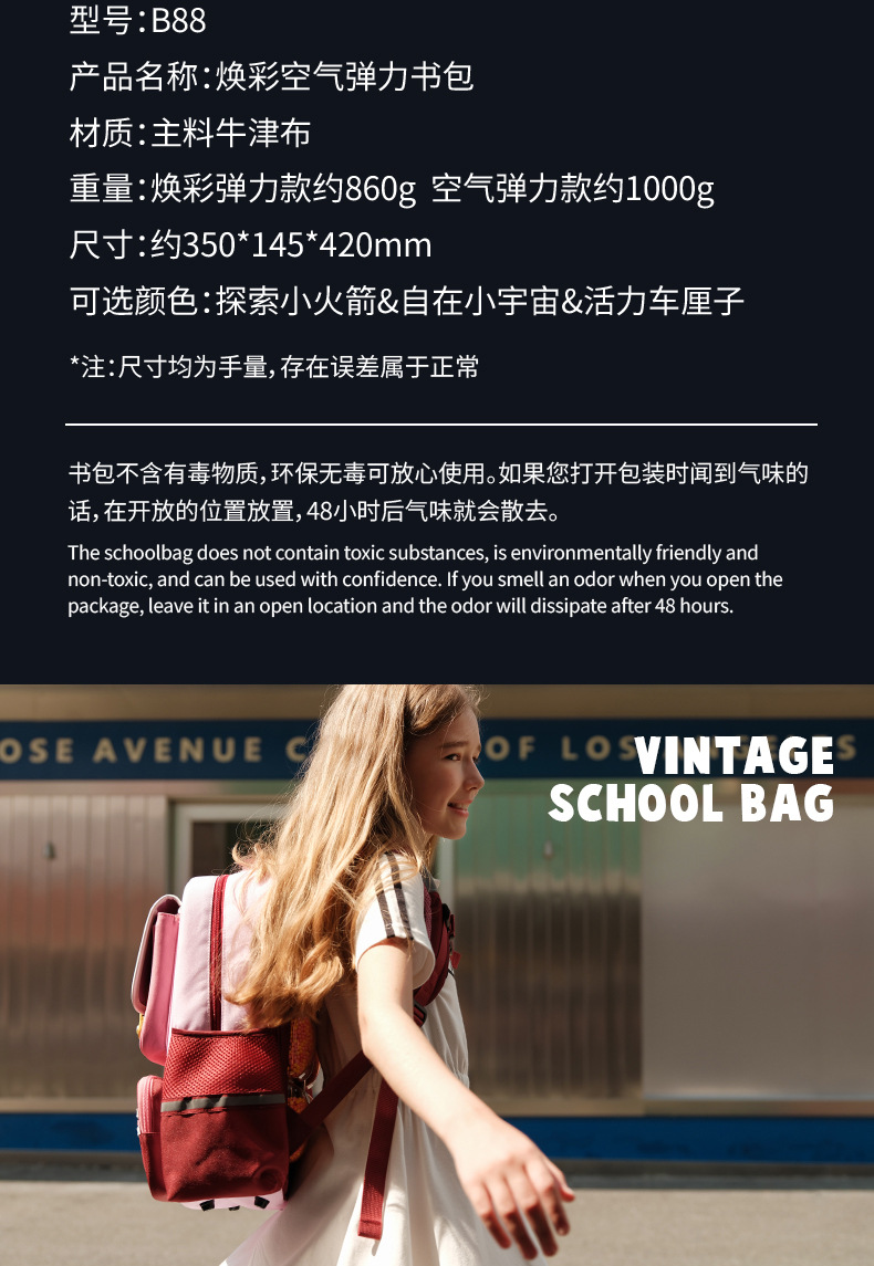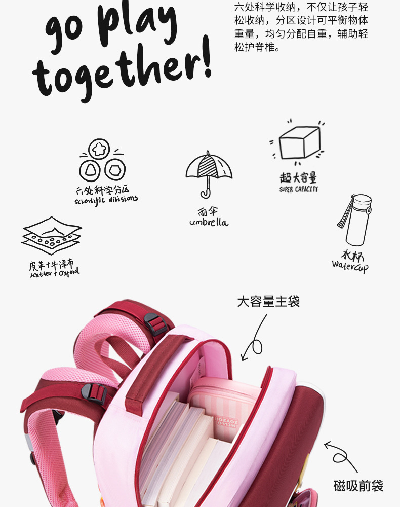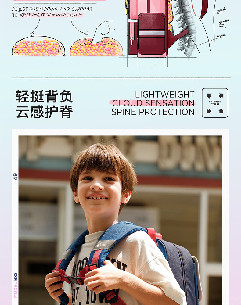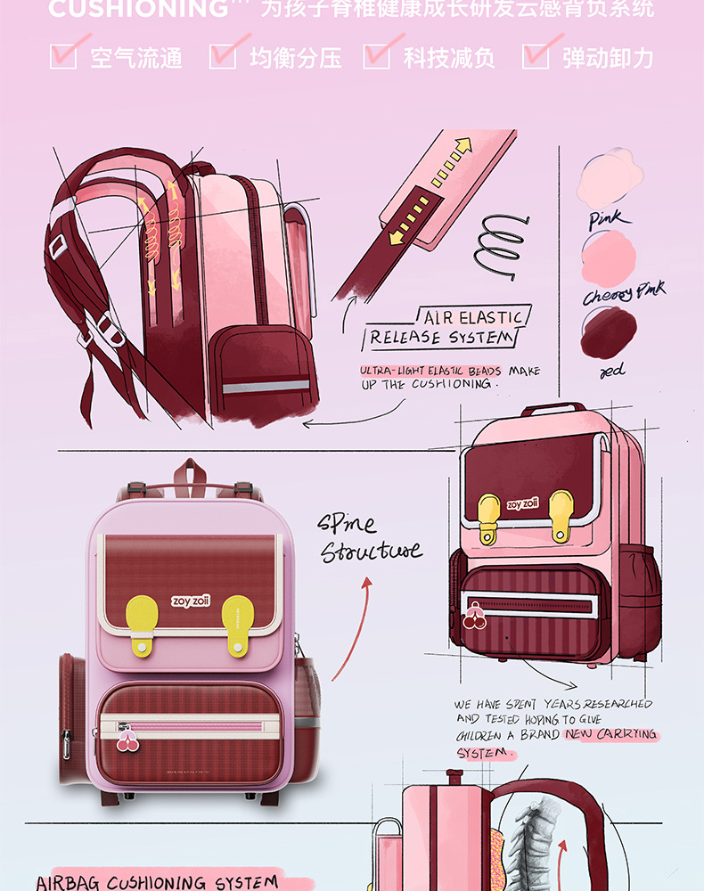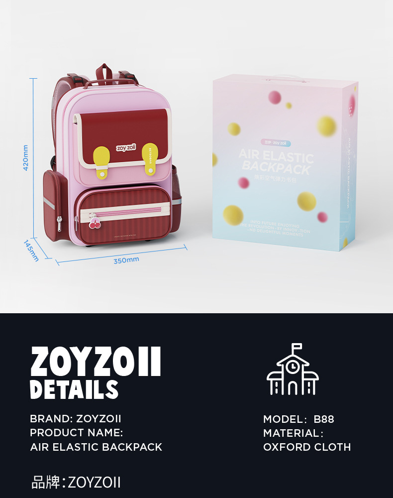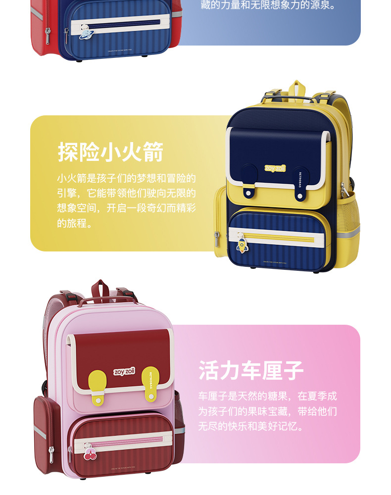 Zoyzoii tas sekolah pelindung tulang belakang, tas sekolah dasar sekolah pengurang beban kelas 1, 2, 3 hingga kelas 6 untuk anak laki-laki dan perempuan 1-3