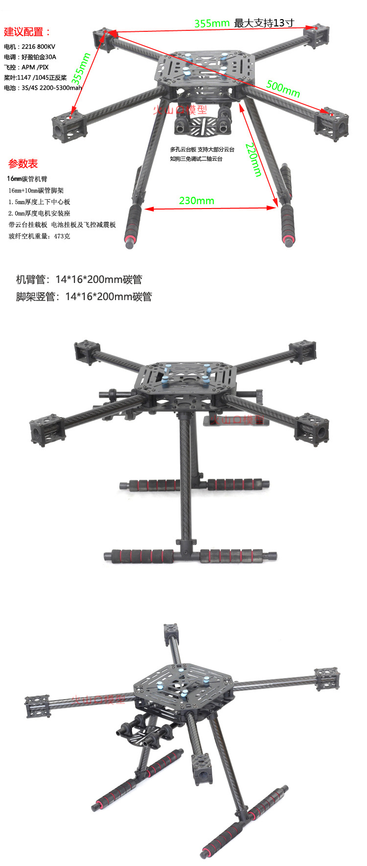 温馨提示:碳纤材质会导电,所以安装分线板(供电板)时候要格外小心,避免烧毁设备