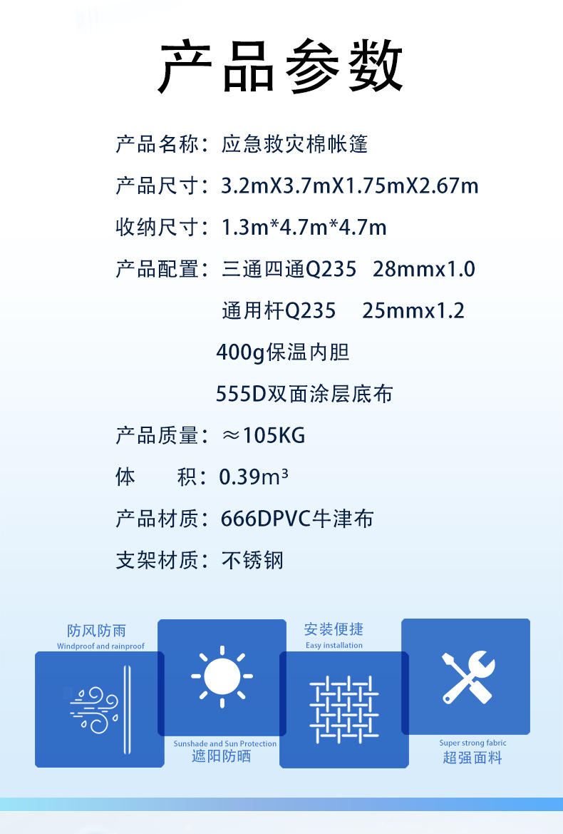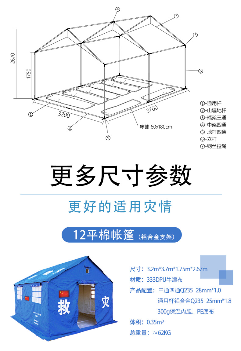 Tenda bantuan bencana standar untuk darurat sipil 12 tenda kapas datar